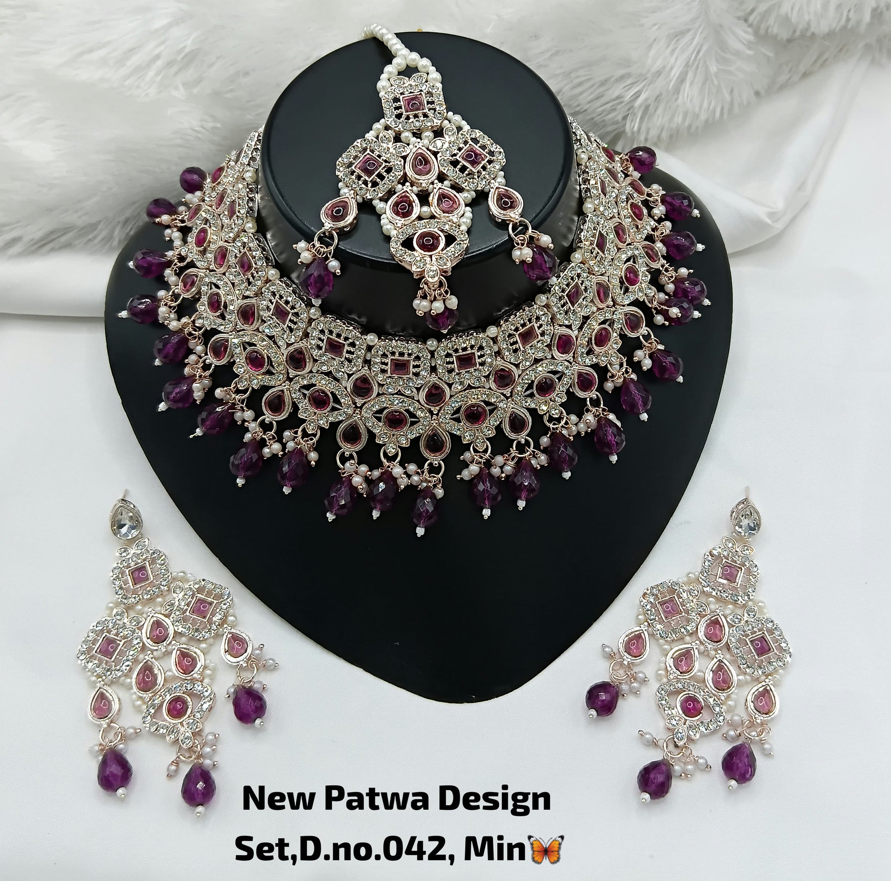 Purple Stone Work Necklace Set