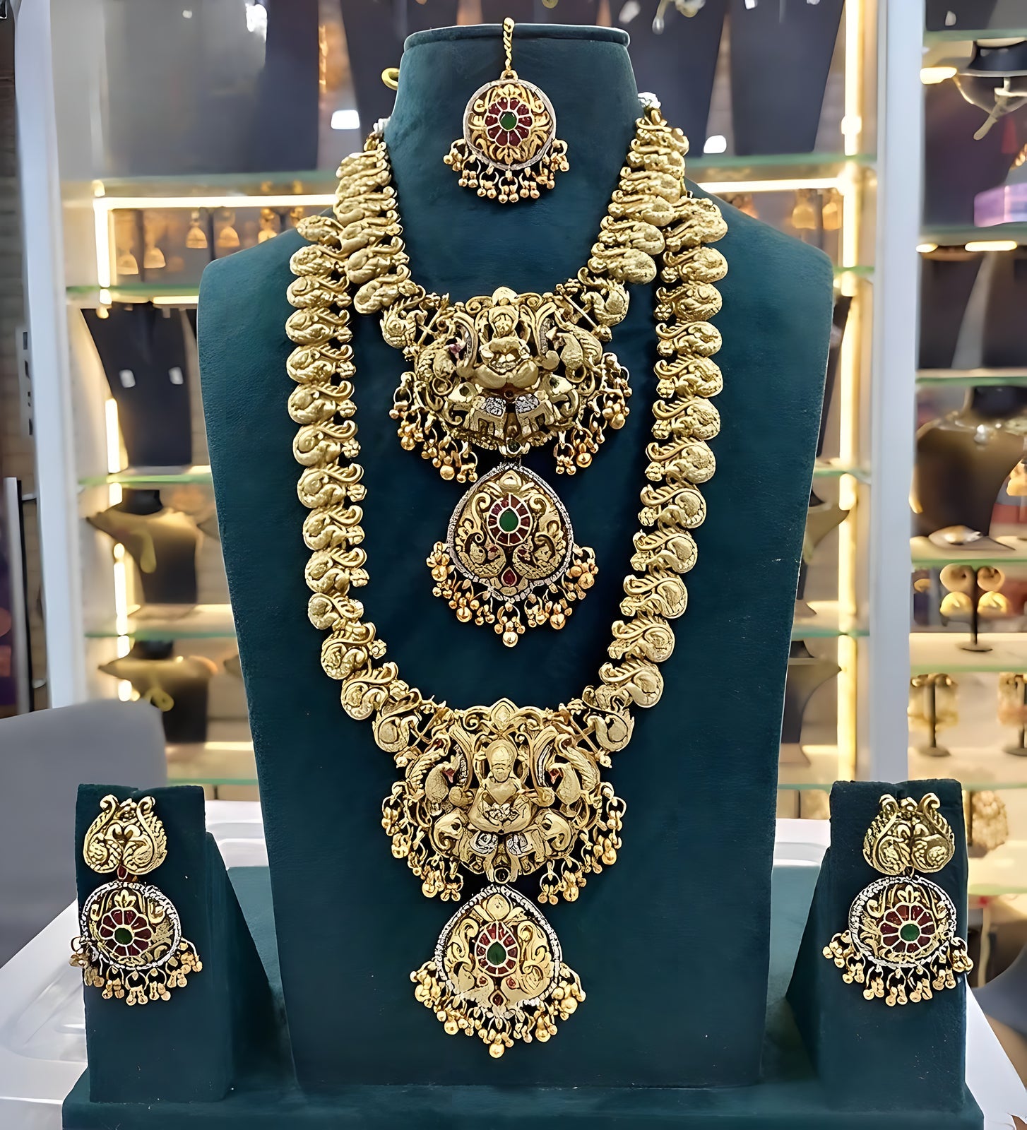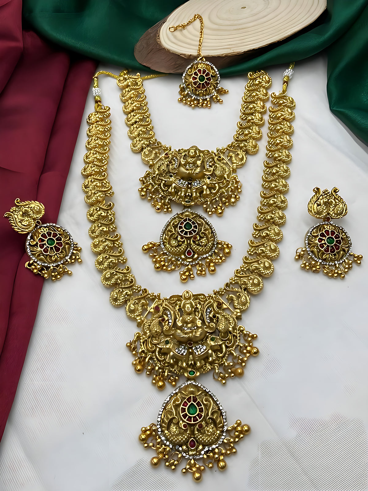 • Set Includes: Long Necklace, Earrings, Maang Tikka