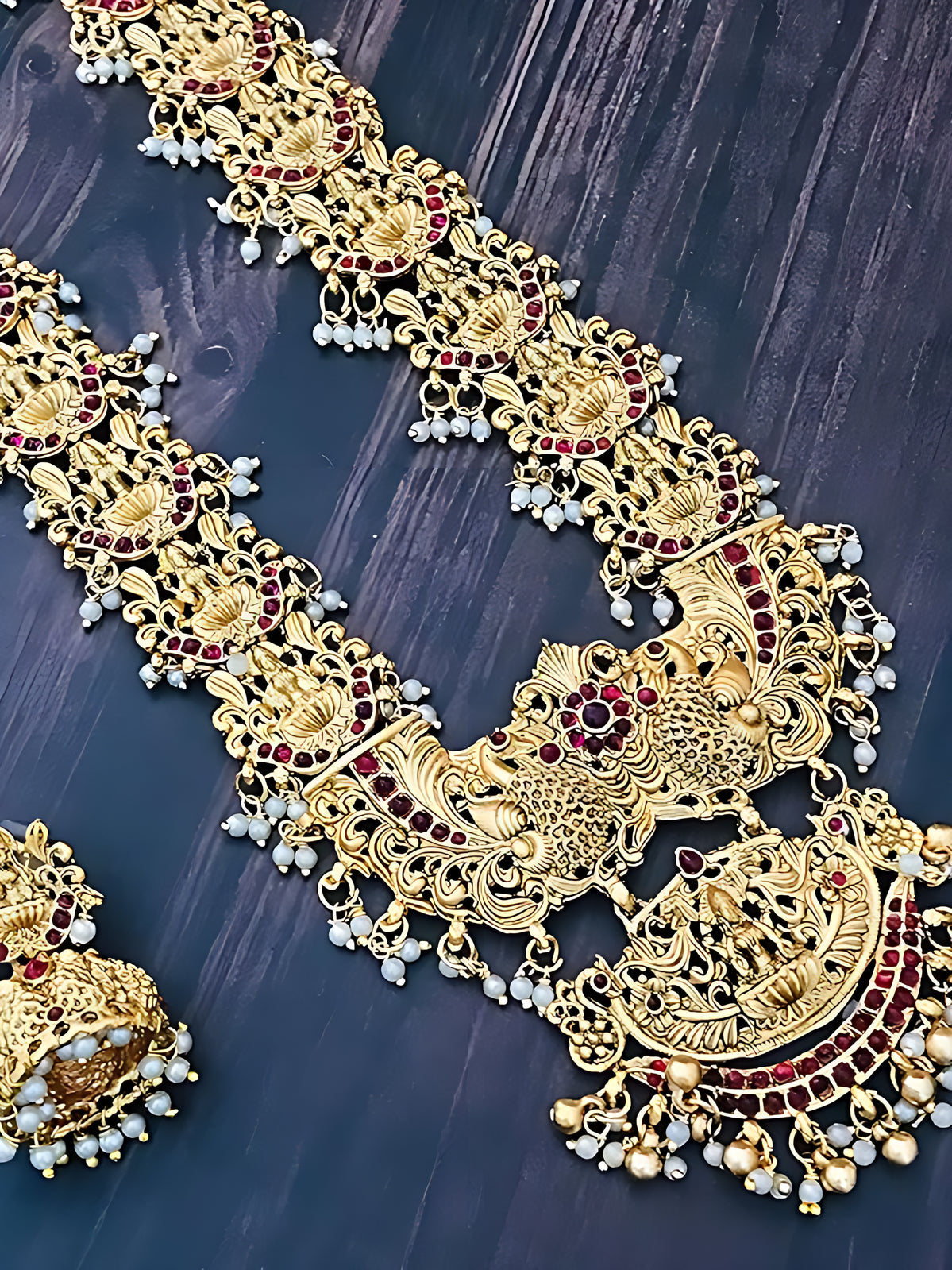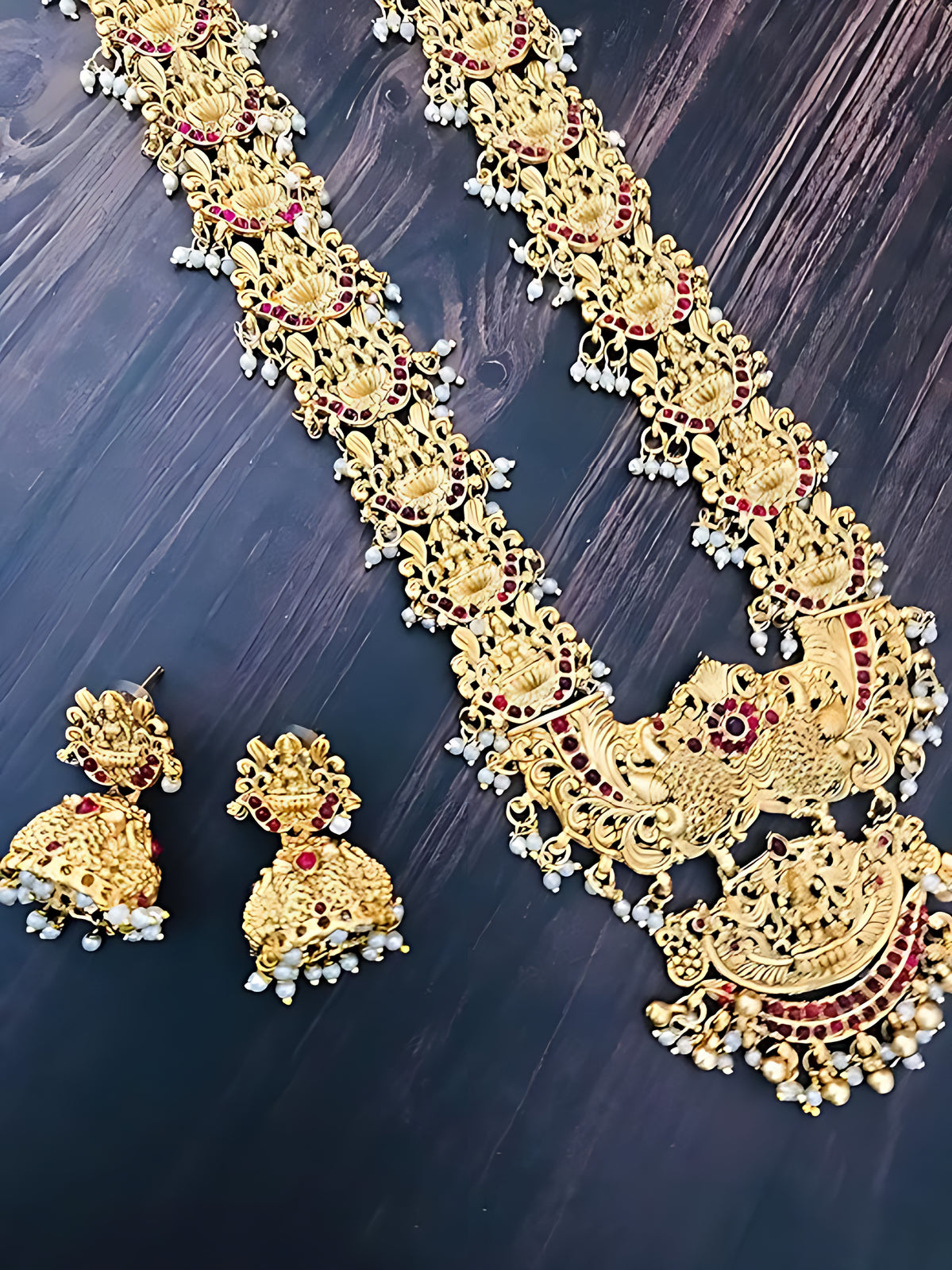 This Captivating Gold Filigree Jewelry Set Features An Intricate, Ornate Necklace And Matching Earrings. The Necklace Showcases An Intricate Floral And Leaf Design, Creating A Striking And Elegant Statement Piece. The Ornately Detailed Pendant Hangs From A Delicate Yet Sturdy Chain, Complemented By The Stunning Filigree Earrings. This Luxurious Set Is Crafted With Exceptional Attention To Detail, Making It A Timeless Addition To Any Jewelry Collection.