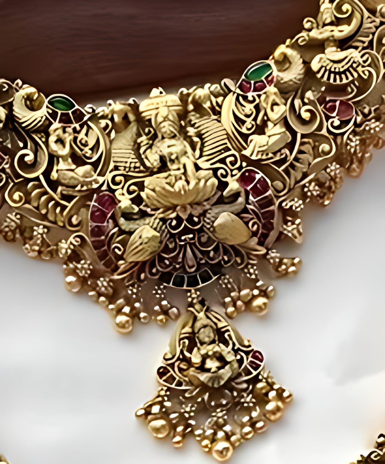 2. A Matching Choker Necklace With Similar Ornate Temple-Style Patterns