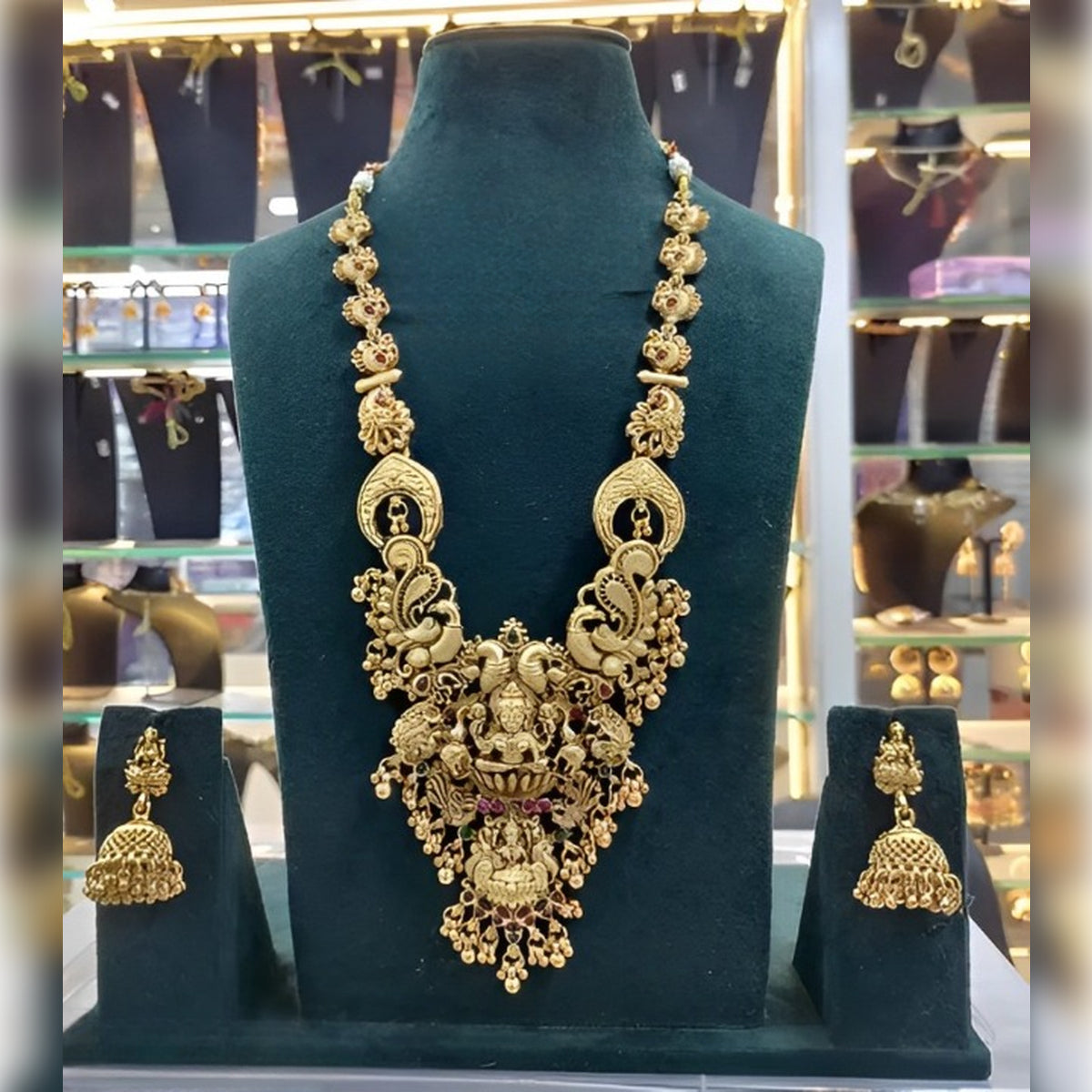 Elevate Your Bridal Or Traditional Look With This Stunning Gold-Plated Temple Jewelry Set. This Exquisite Combo Includes: