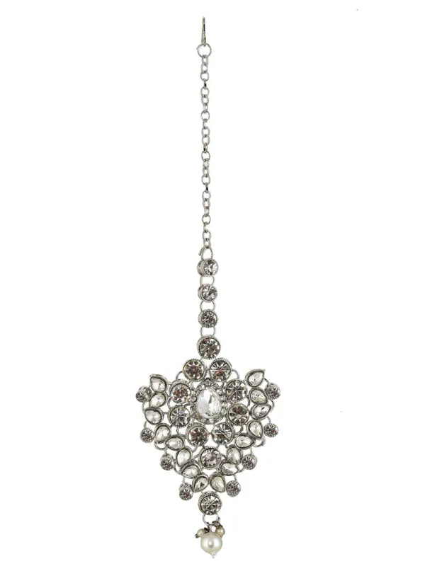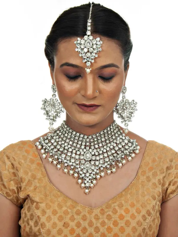Women's Platinum Plated Silver Polish Stone Mini Bridal Choker Set - Tehzeeb Creations