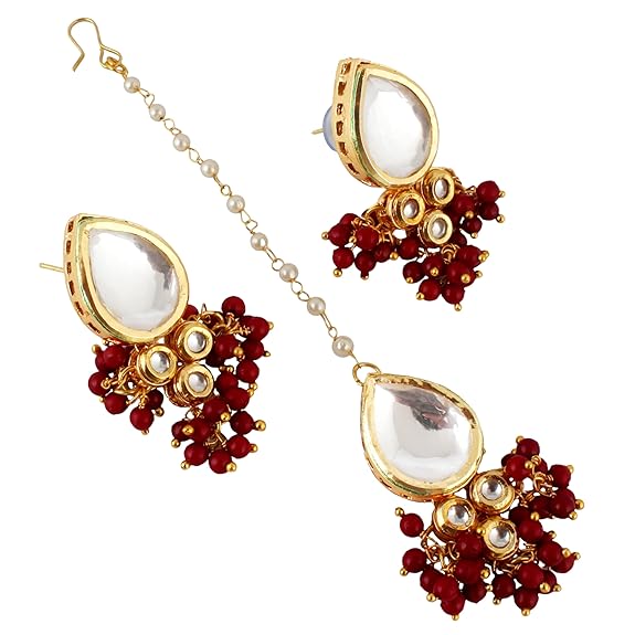 Women's Back Meenakari 18K Gold Plated Tika Earring Combo Uncut Big Faux Kundan Choker Necklace Set - Tehzeeb Creations