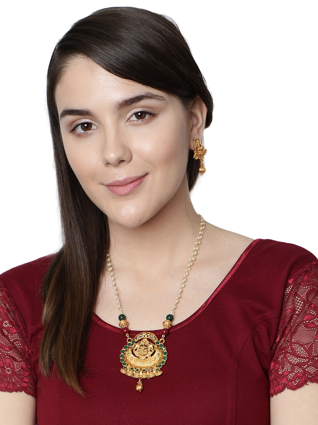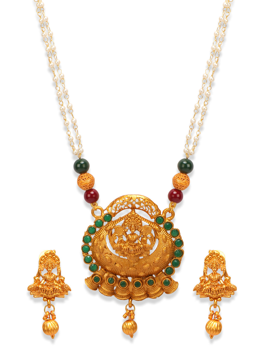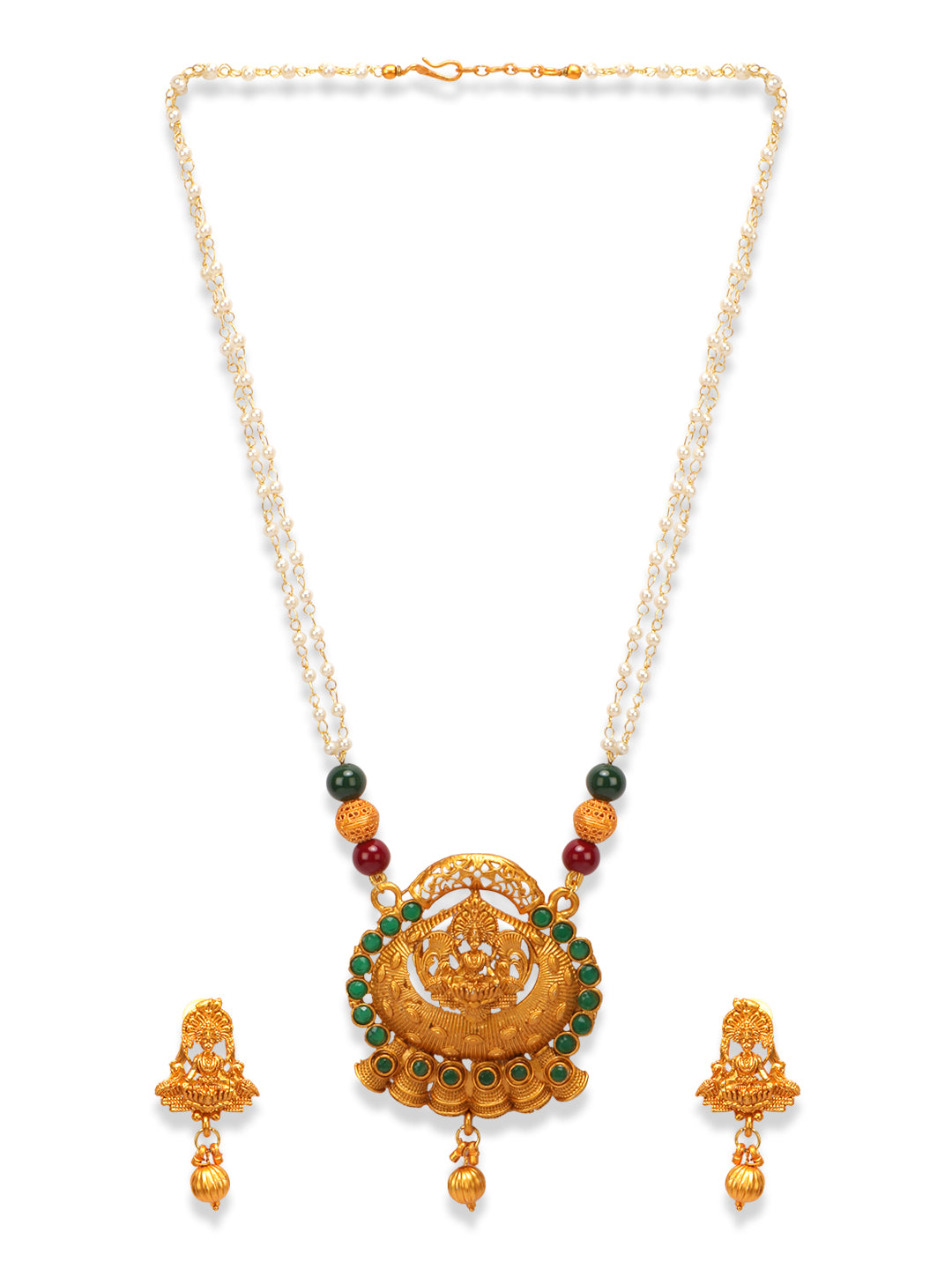 Jewelry Adds Lavishing Look To Any Clothing. Any Fabulous Outfit Is Incomplete Without Matching Jewelry. A Woman Is Completely Dressed With Wearing Matching Jewelry. So It Can Be Rightfully Said That In Order To Dress Completely, A Lady Needs Fashion Jewelry. What Makes The Temple Jewelry Unique From The Other Pieces Of Jewellery Is The Religious Sentiment. The Metalwork That You See In Temple Jewelry Pieces Is Extraordinary. Club This Temple Jewelry With Silk Saree For The Perfect Grace.