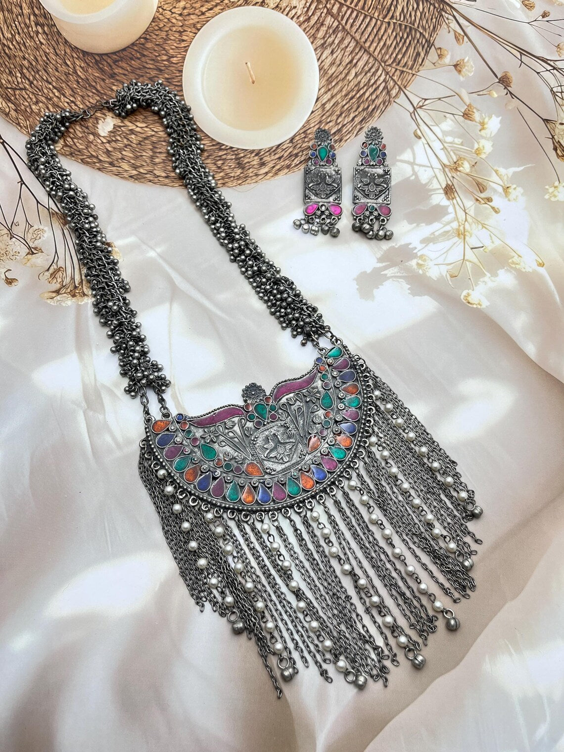 These Stylish Afghani Necklace Set From Vastrabhushan Will Certainly Leave You Spellbound. These Necklace Have An Excellent Finish And Gives Out An Exquisite Sense Of Style. If You Are Looking For An Amazing Fashion Jewelry Set For Special Occasions Such As Anniversary, Engagement, Party, Wedding Or For Gifting , Then Your Search Ends Here.