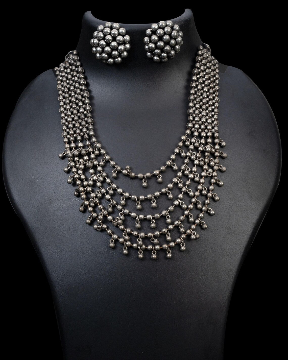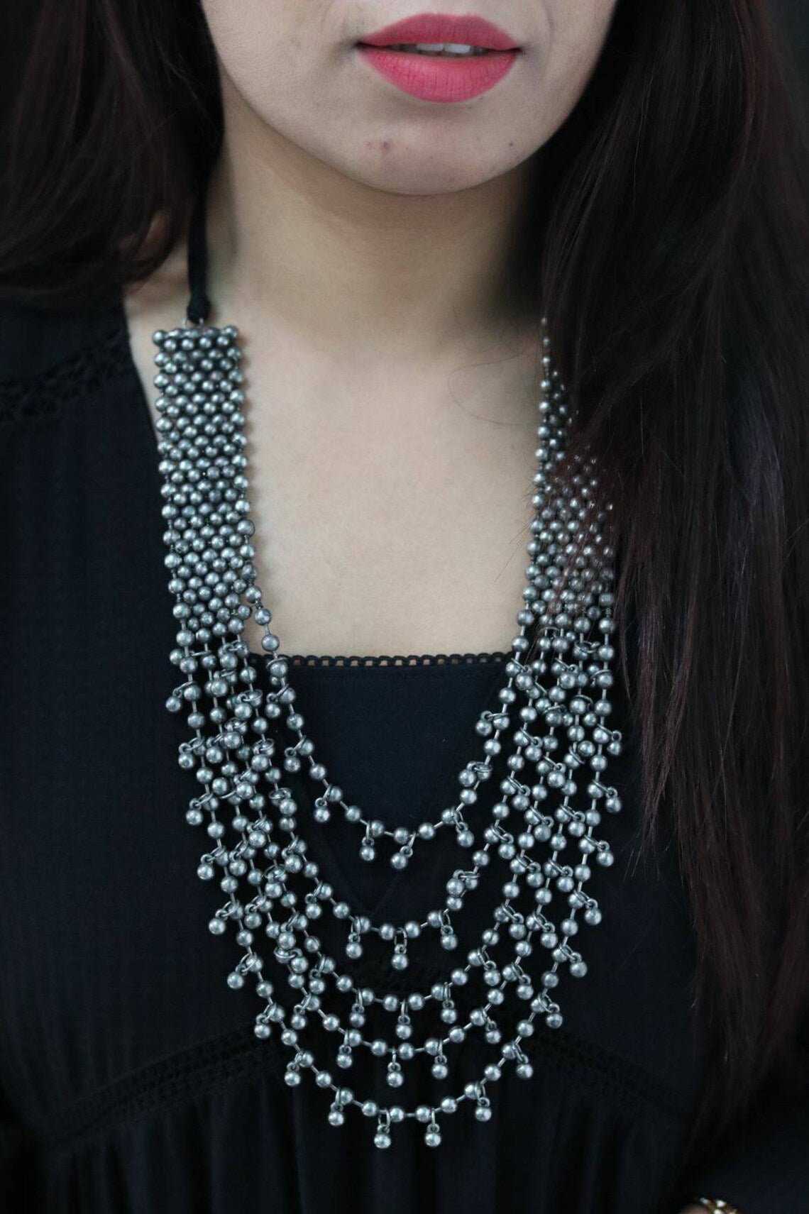 This Is A Beautiful Multilayer Silver Looking Jewelry. It Is A Beautiful And Elegant Oxidized Necklace That Has Beautiful Ghunghru In All The Layers. In The Pack You Will Get A Multilayer Oxidized Necklace And Also Get An Assured Gift With Every Purchase. This Indian Jewelry Will Go With Any Outfit In Your Wardrobe And Uplift Your Entire Look. Get This Oxidized Jewelry For Yourself And Add A Treasure To Your Closet. Additionally, You Will Also Get An Assured Gift With Every Purchase.