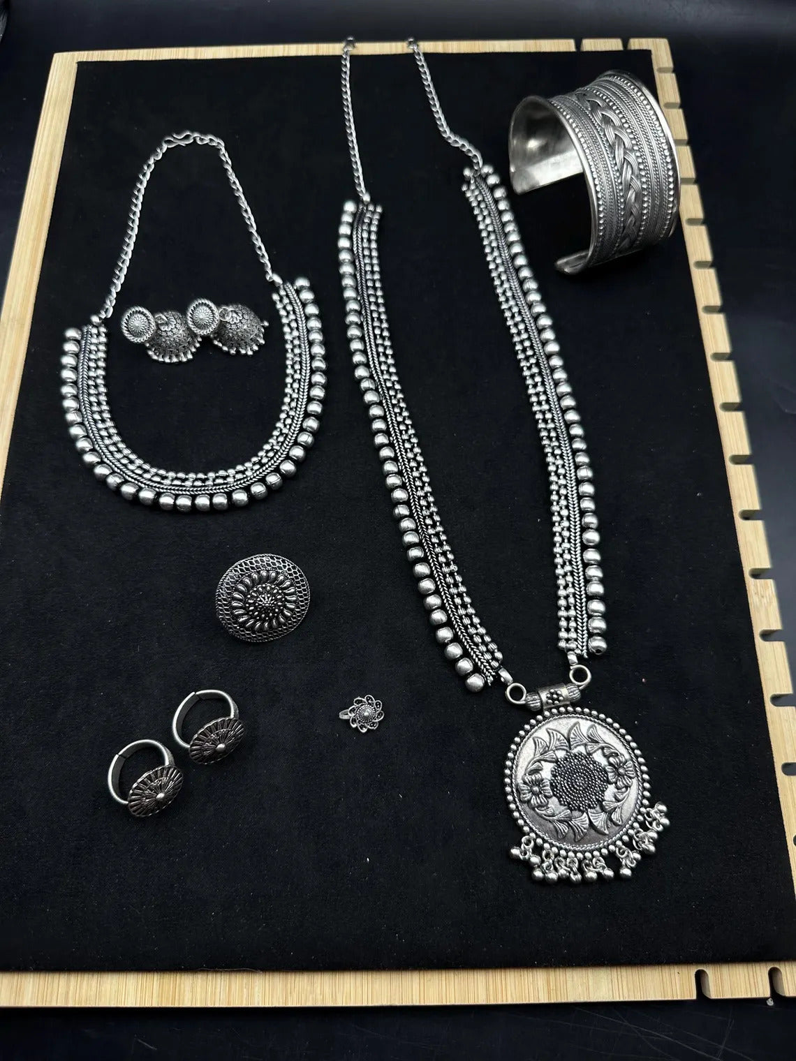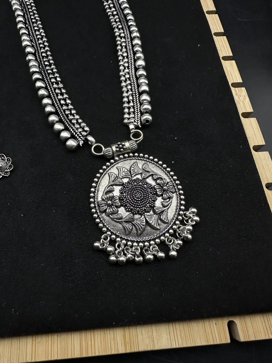 Women's German Silver Necklace Oxidised Jewelry Set Of Long Necklace Set, Ethnic Jewelry, Temple Jewelry