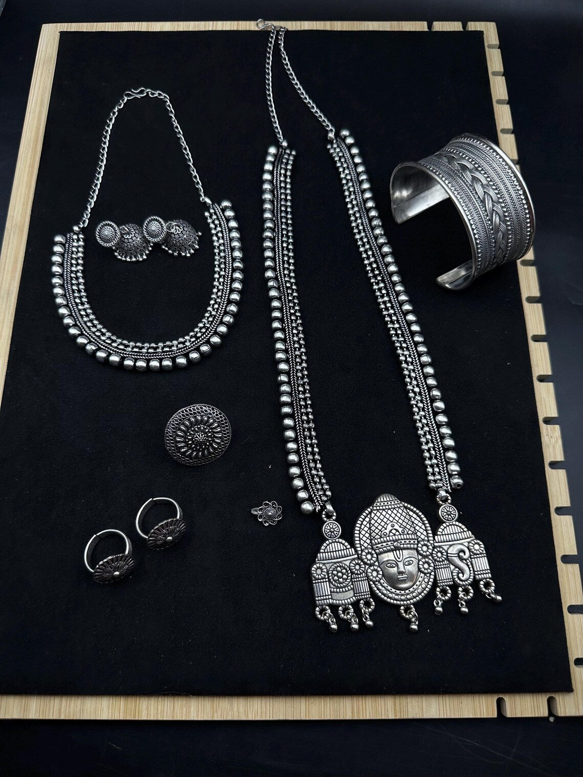 Women's Indian Silver Jewelry Set Of Long Necklace Set, Ethnic Jewelry, Temple Jewelry, Indian Jewelry Necklace Set