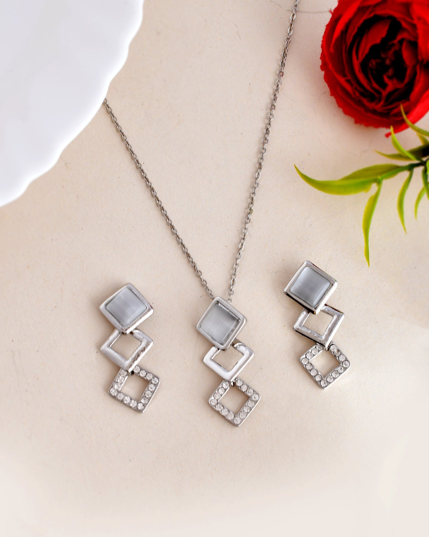 The Voj Stainless Steel Silver Jewellery Set Is A Pack Of Two Pieces That Will Add A Touch Of Elegance To Any Outfit. Made Of High-Quality Stainless Steel, This Set Is Durable And Resistant To Tarnishing. The Silver Color Gives It A Classic And Timeless Look That Will Never Go Out Of Style. Perfect For Any Occasion, This Set Is A Great Addition To Any Jewellery Collection.