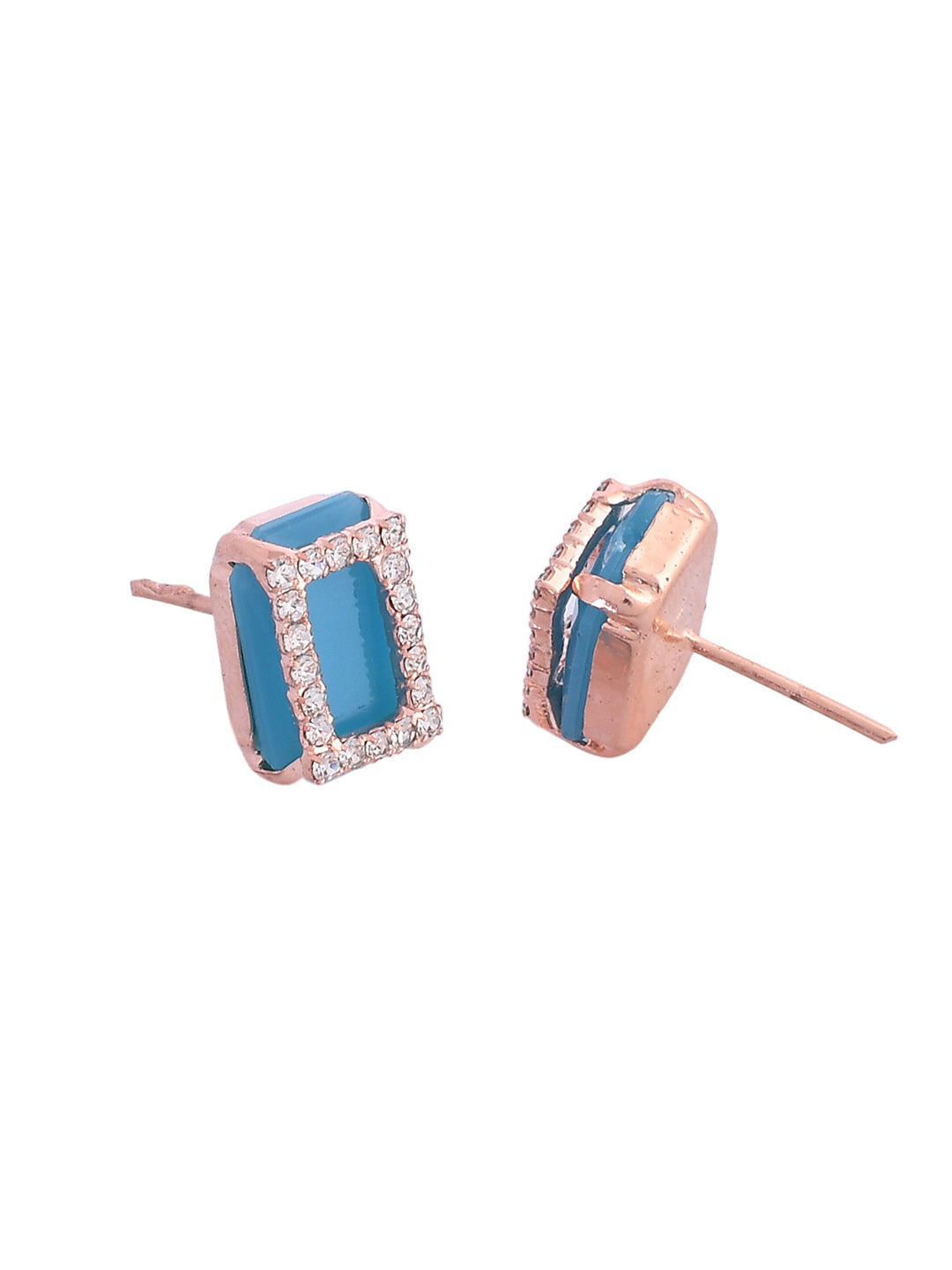 Elevate Your Elegance With Our Rose Gold Plated American Diamond Blue Cubic Studded Jewellery Set. Crafted To Perfection, This Set Exudes Timeless Sophistication. Each Piece Features Exquisite Blue Cubic Zirconia Stones Intricately Set In Rose Gold-Plated Settings, Exuding Luxury And Charm. Perfect For Adding A Touch Of Glamour To Any Ensemble, This Set Is A Must-Have Addition To Your Jewelry Collection.