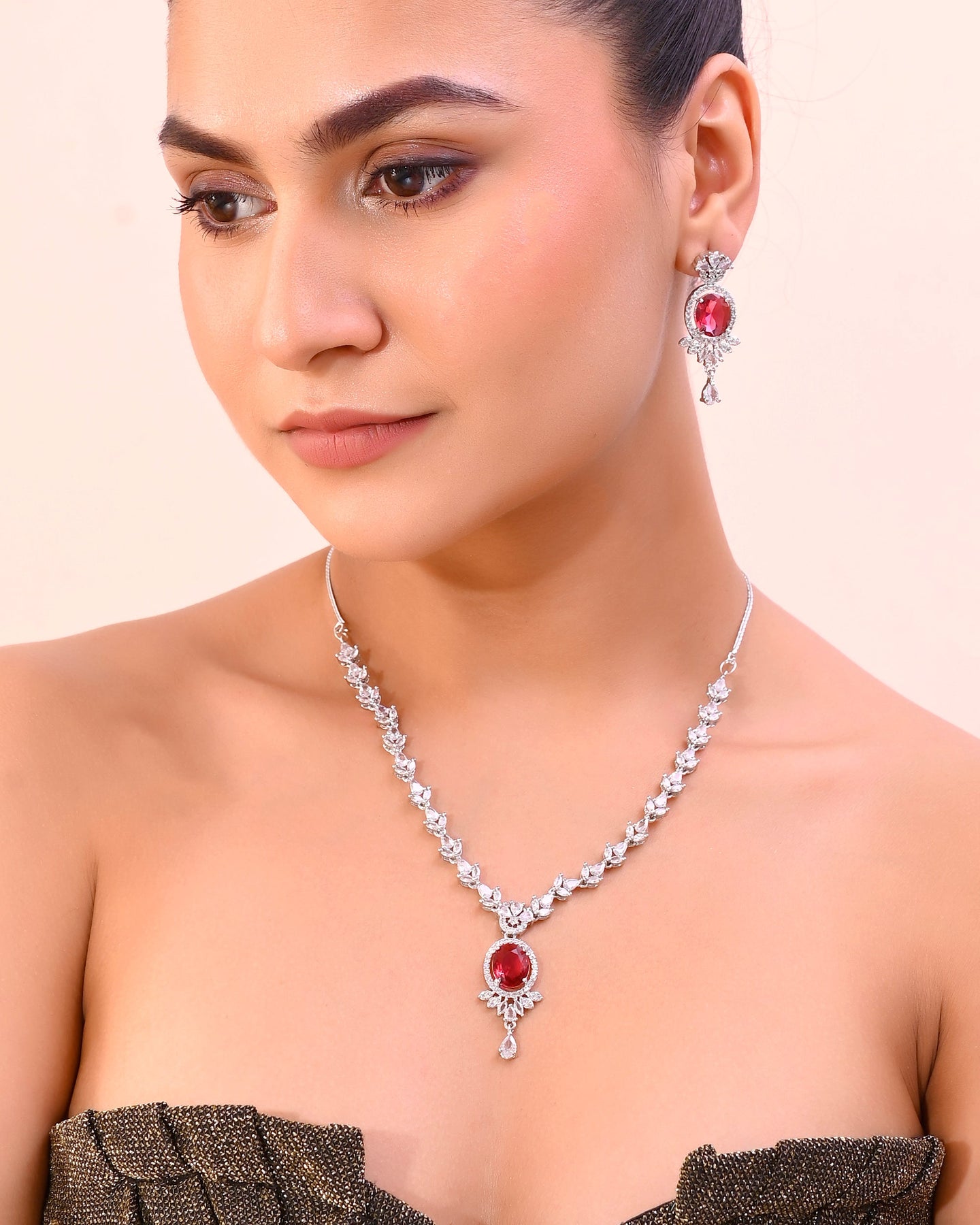 Enhance Your Elegance With Our Silver Plated Chain Featuring A Stunning Pendant And Earrings Set Adorned With Pink And White Ad Stones. Crafted To Perfection, This Set Exudes Charm And Sophistication. Perfect For Adding A Touch Of Sparkle To Any Occasion, It Combines Timeless Design With Contemporary Style, Making It A Versatile Addition To Your Jewelry Collection.