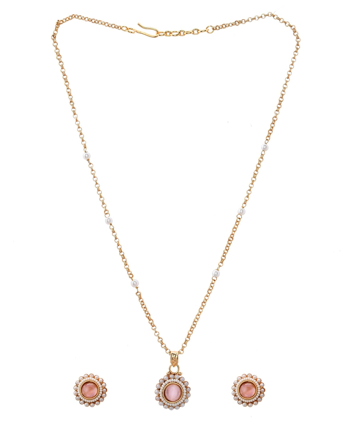 This Gold-Plated Chain Set Features Beautiful Pink Stones, Adding A Pop Of Color And Elegance To Your Look. The Delicate Design Of The Chain Is Enhanced By The Vibrant Stones, Creating A Sophisticated Yet Eye-Catching Appeal. Perfect For Both Casual And Formal Occasions, This Set Offers A Timeless And Chic Touch That Complements Any Outfit Beautifully.