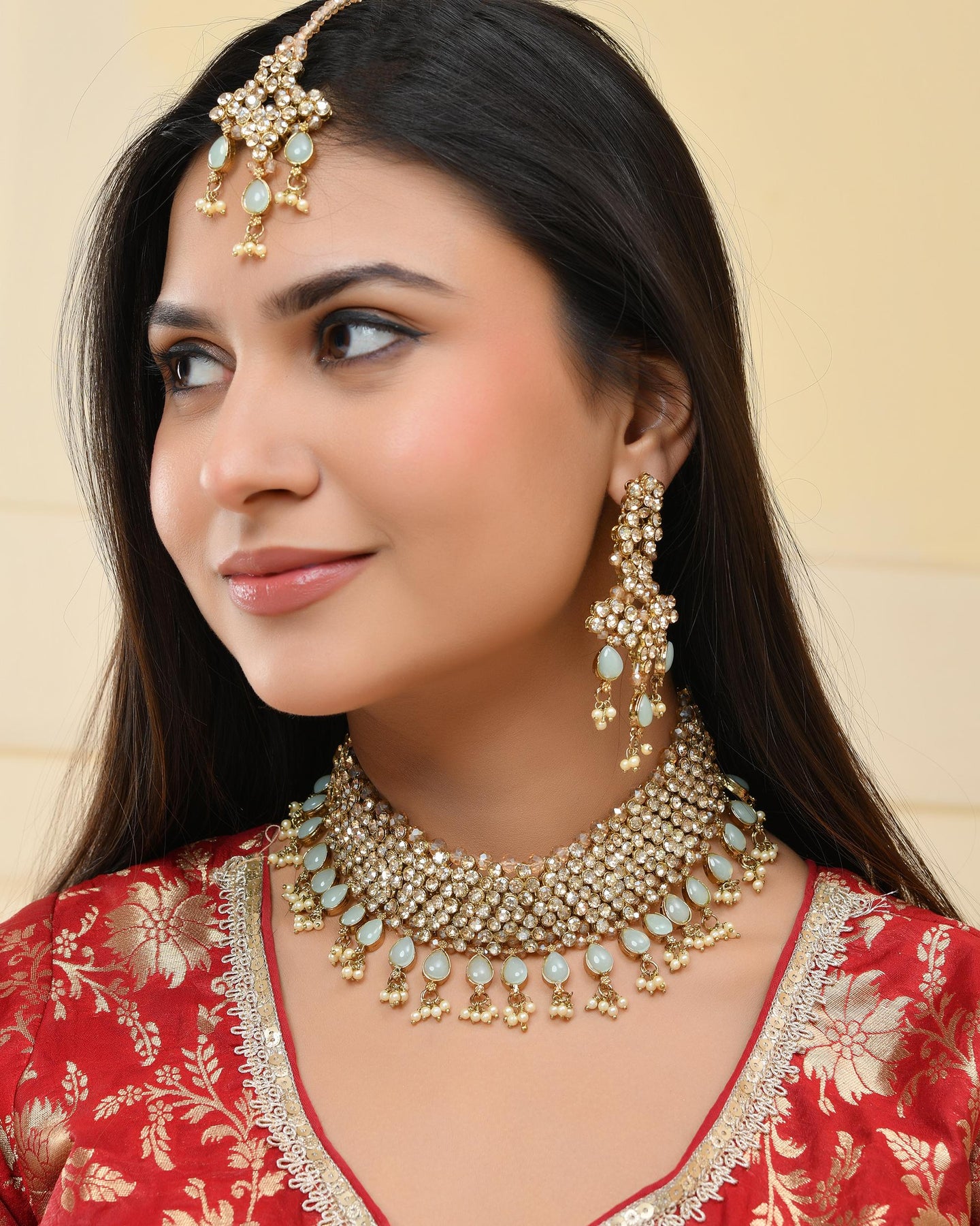 Pack Contains :1 Necklace,2 Earrings And 1 Maang Tikka