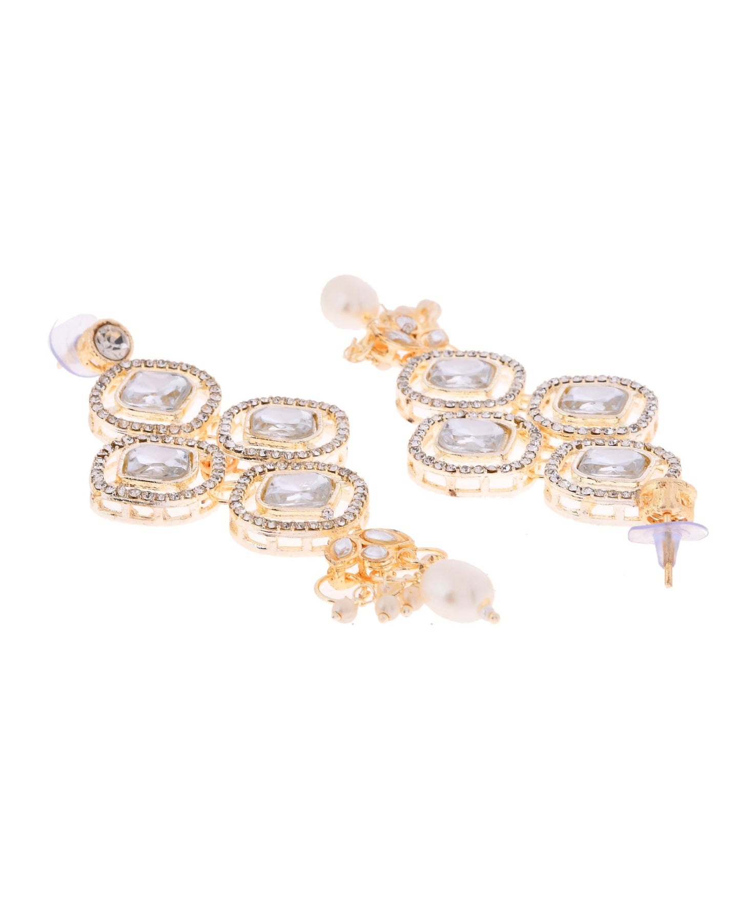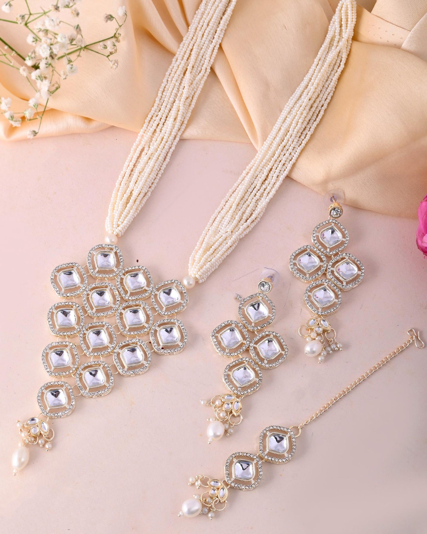 This Gold-Plated Stone And White Beaded Long Jewelry Set Offers A Perfect Blend Of Elegance And Sophistication. The Sparkling Stones, Paired With Lustrous White Beads, Create A Stunning And Timeless Design. Ideal For Weddings, Festive Events, Or Special Occasions, This Set Adds A Graceful Touch To Your Outfit, Making You Shine With Its Refined And Luxurious Appeal.