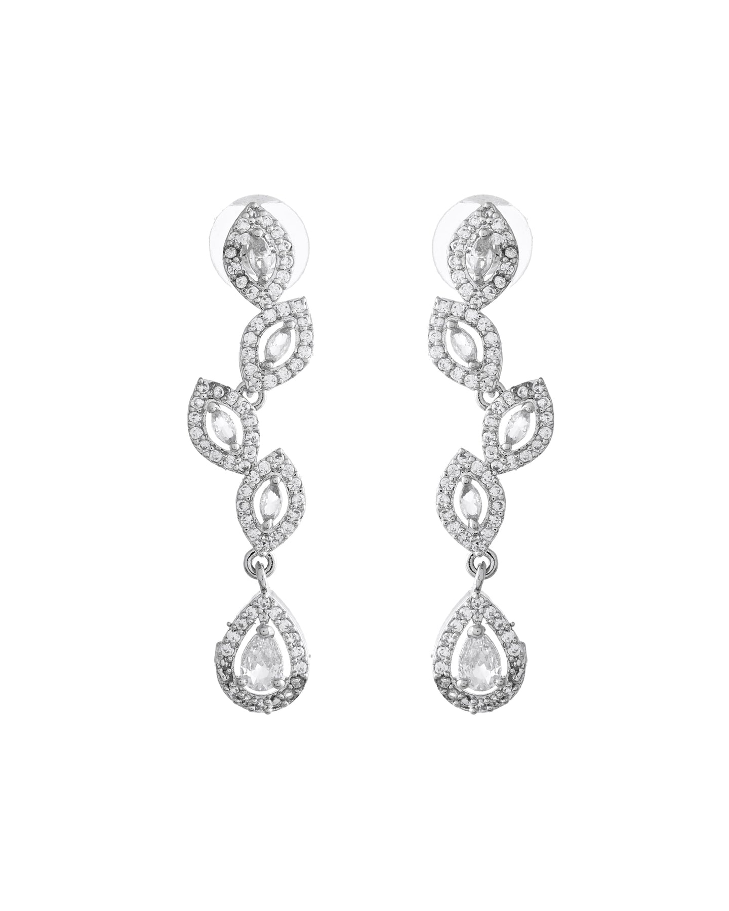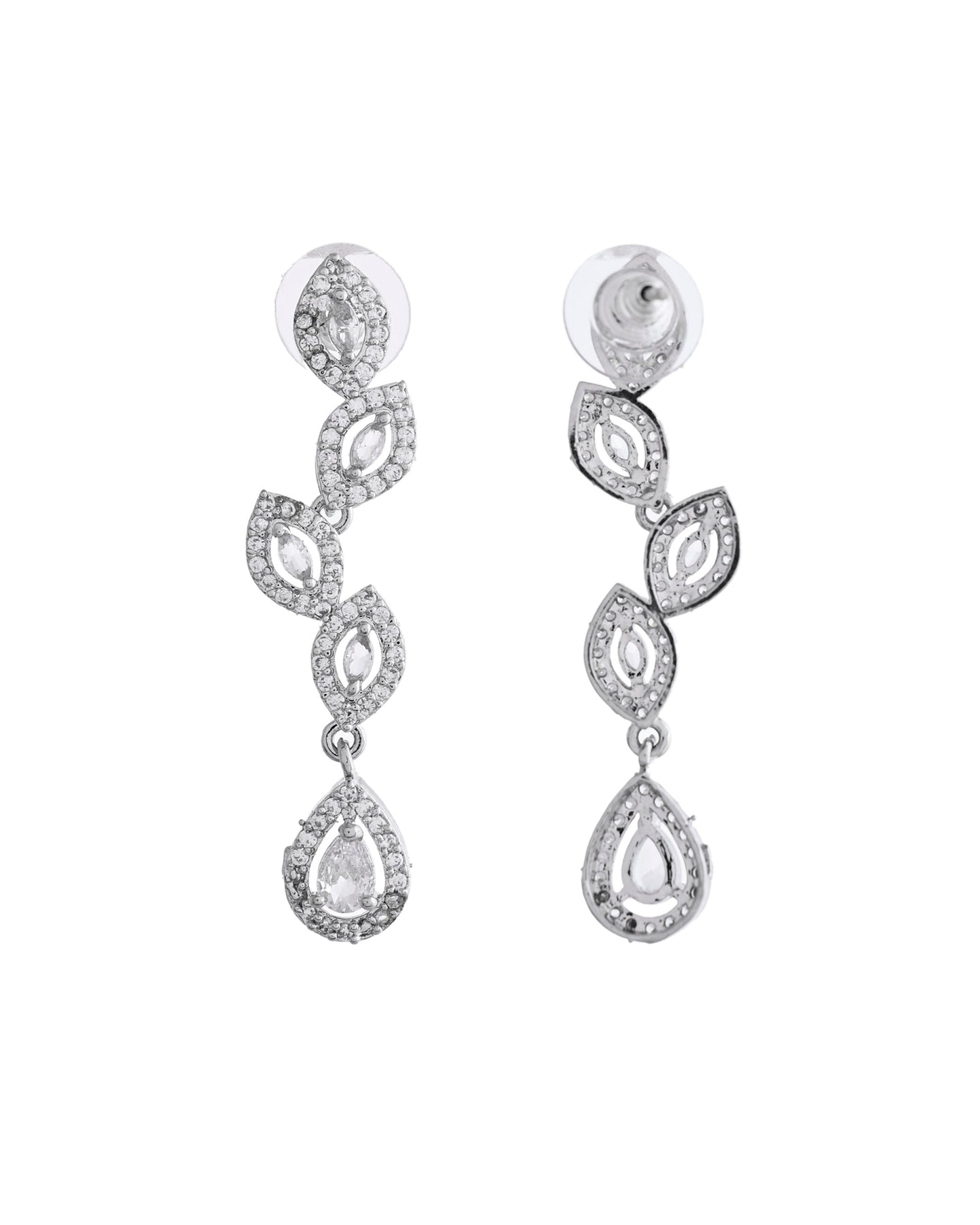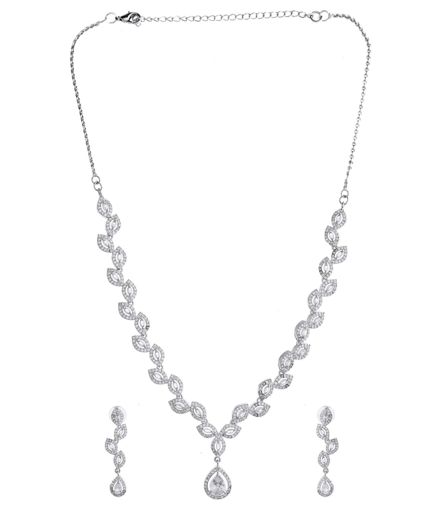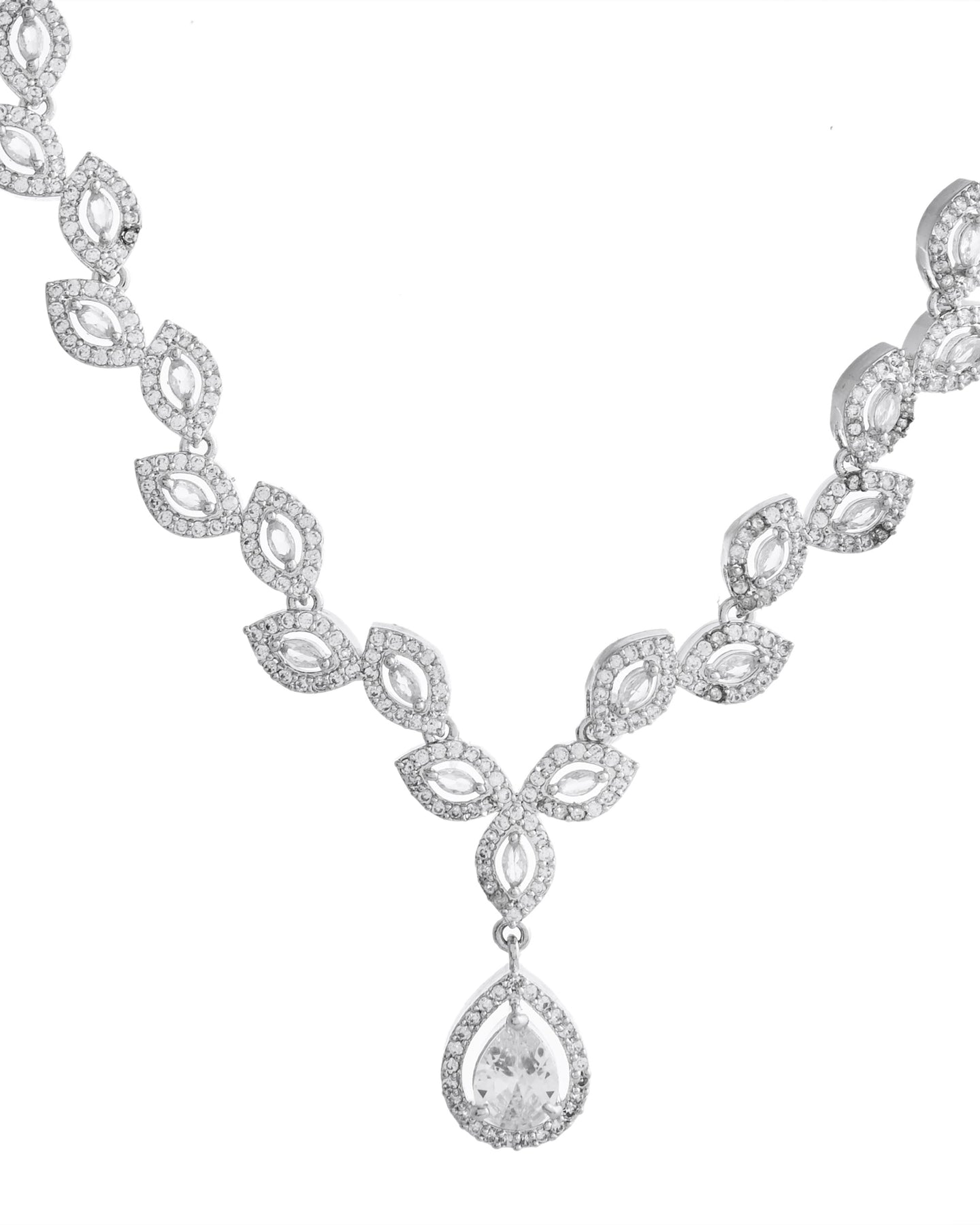 This Silver Plated Tear Drop Shaped Ad Necklace With Earrings Set Exudes Elegance And Sophistication. Featuring A Beautiful Tear-Drop Design Adorned With Sparkling Ad Stones, This Set Offers A Refined, Timeless Look. The Sleek Silver-Plated Finish Enhances Its Charm, Making It Perfect For Weddings, Parties, Or Special Occasions. A Must-Have Accessory That Adds Grace And Sparkle To Any Outfit.