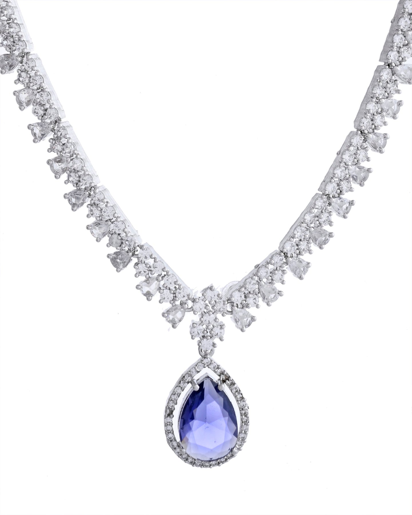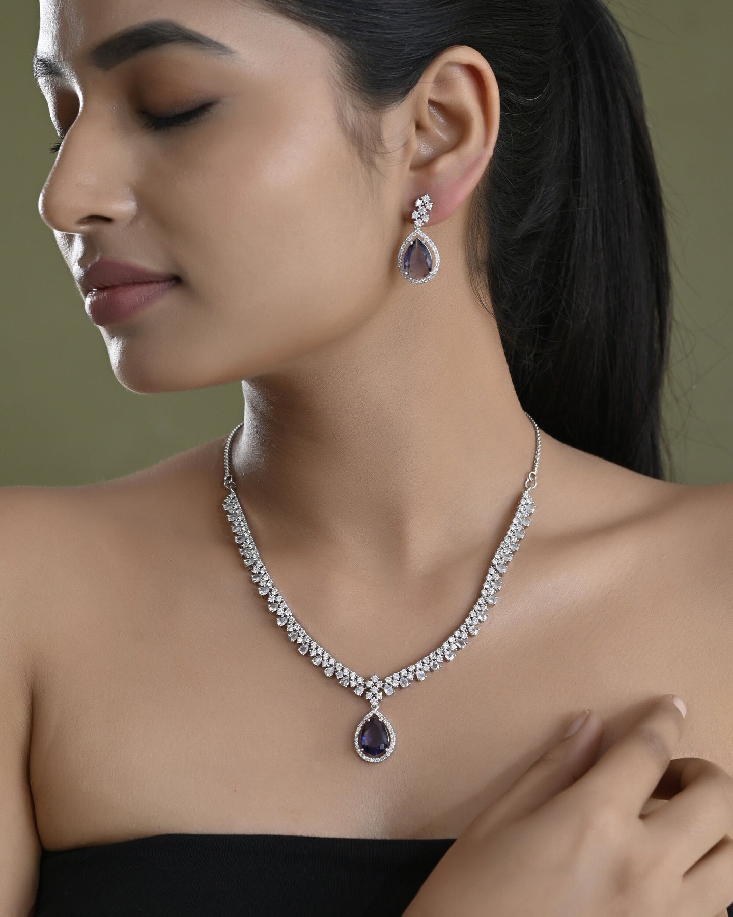 This Silver Plated Purple Stone Studded Ad Jewelry Set Is A Stunning Combination Of Vibrant Color And Elegance. Adorned With Sparkling Ad Stones And Rich Purple Accents, This Set Adds A Bold Yet Refined Touch To Any Outfit. The Silver-Plated Finish Enhances Its Sophisticated Charm, Making It Perfect For Weddings, Parties, Or Special Occasions. A Must-Have Piece That Brings Luxury And Style To Your Jewelry Collection.