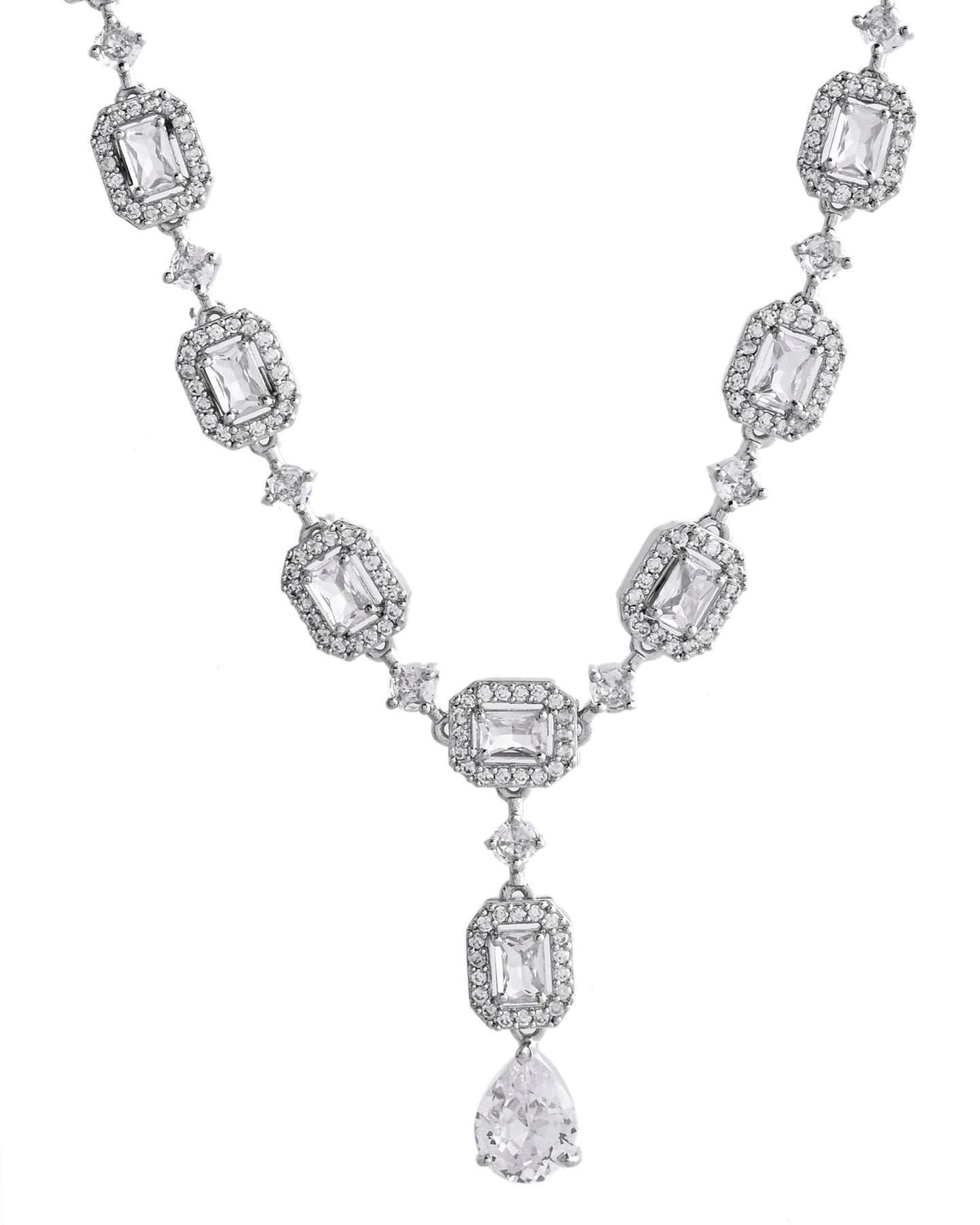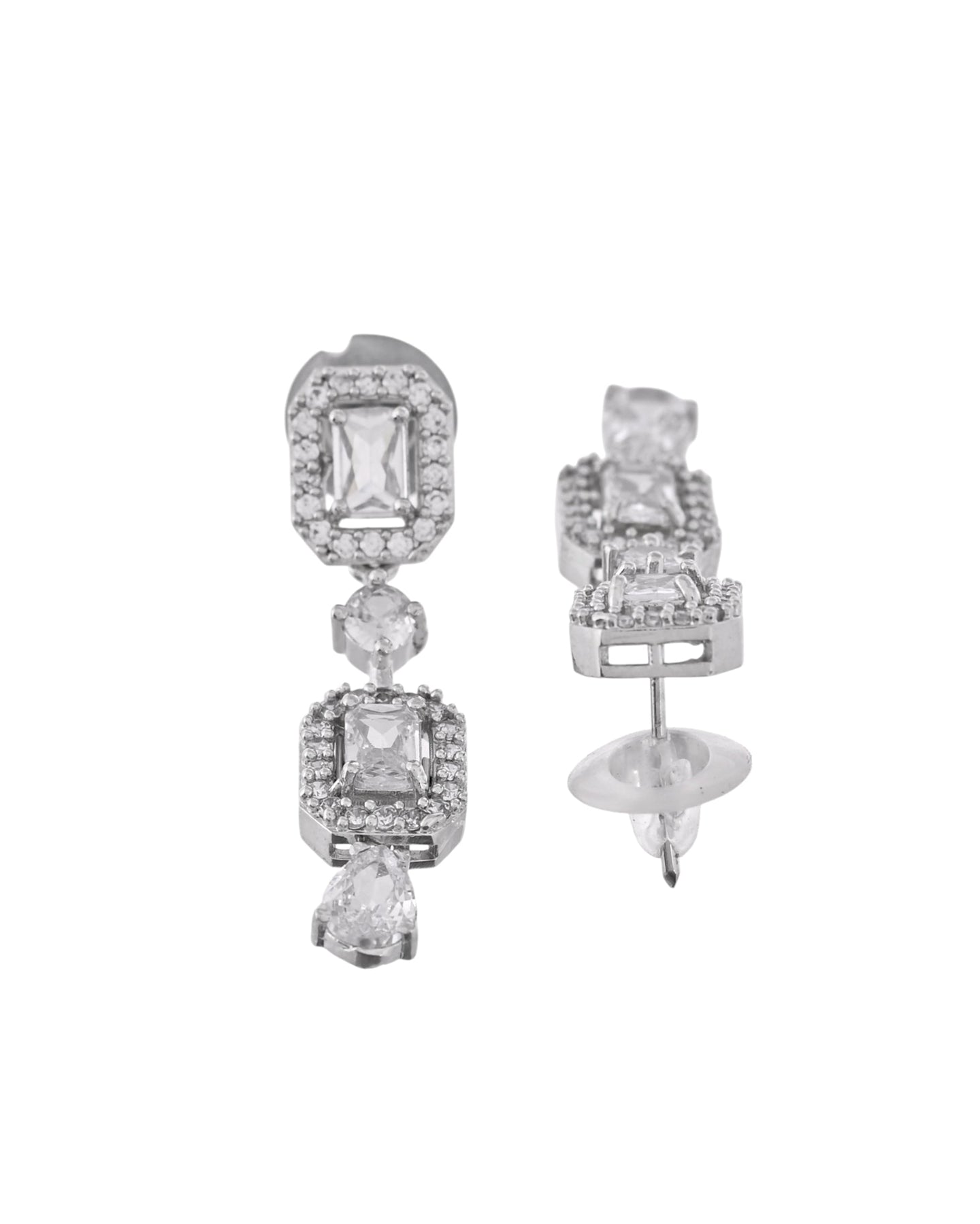 This Silver Plated Geometrical Shaped Ad Jewellery Set Combines Modern Style With Timeless Elegance. Featuring Bold Geometrical Shapes Adorned With Shimmering American Diamond Accents, This Set Creates A Chic, Sophisticated Look. The Silver Plating Adds A Refined Touch, Making It The Perfect Choice For Weddings, Parties, Or Special Occasions, Bringing A Stylish Edge To Your Ensemble.