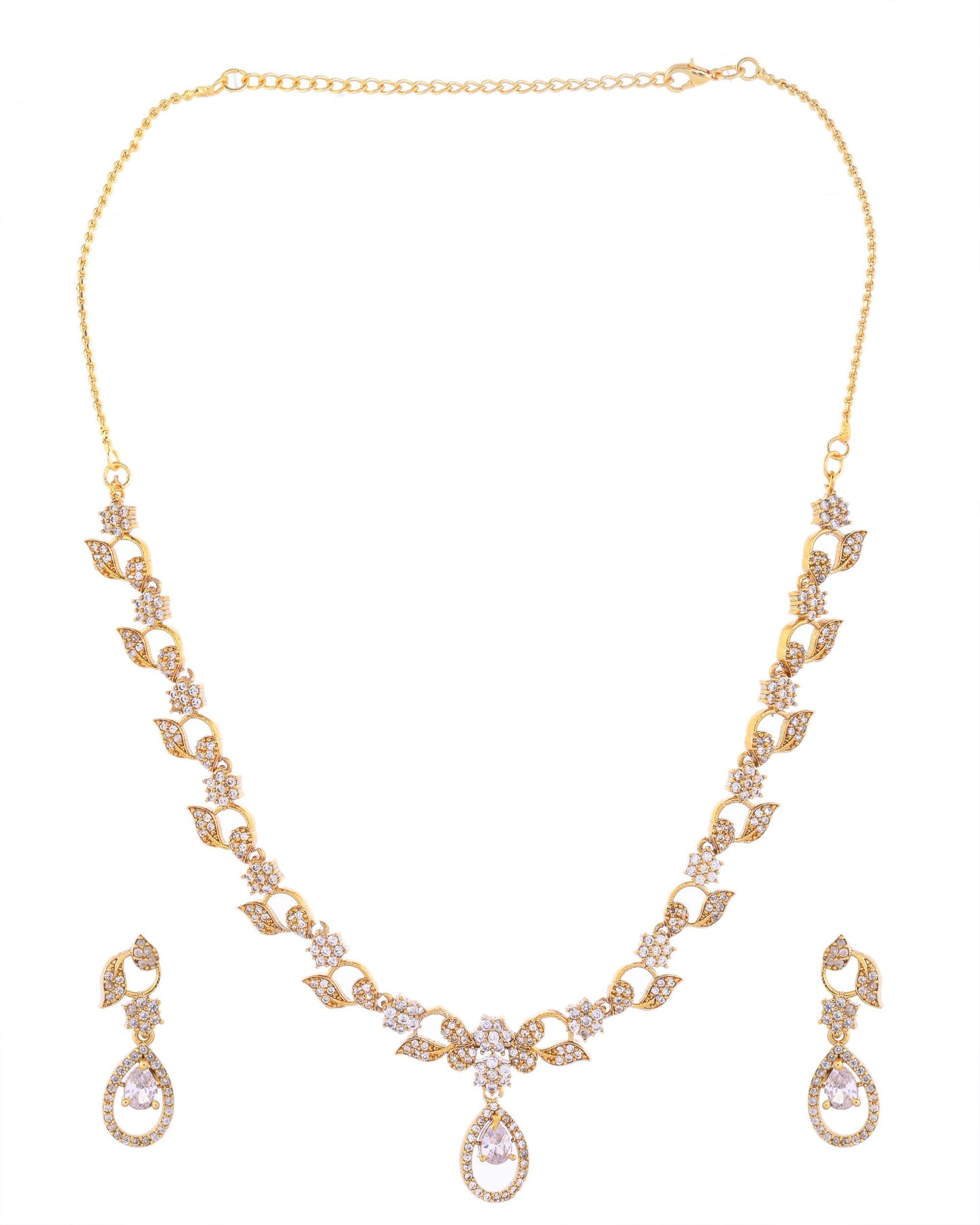 Women's Gold Plated Floral Shaped Ad Studded Elgent Jewellery Set