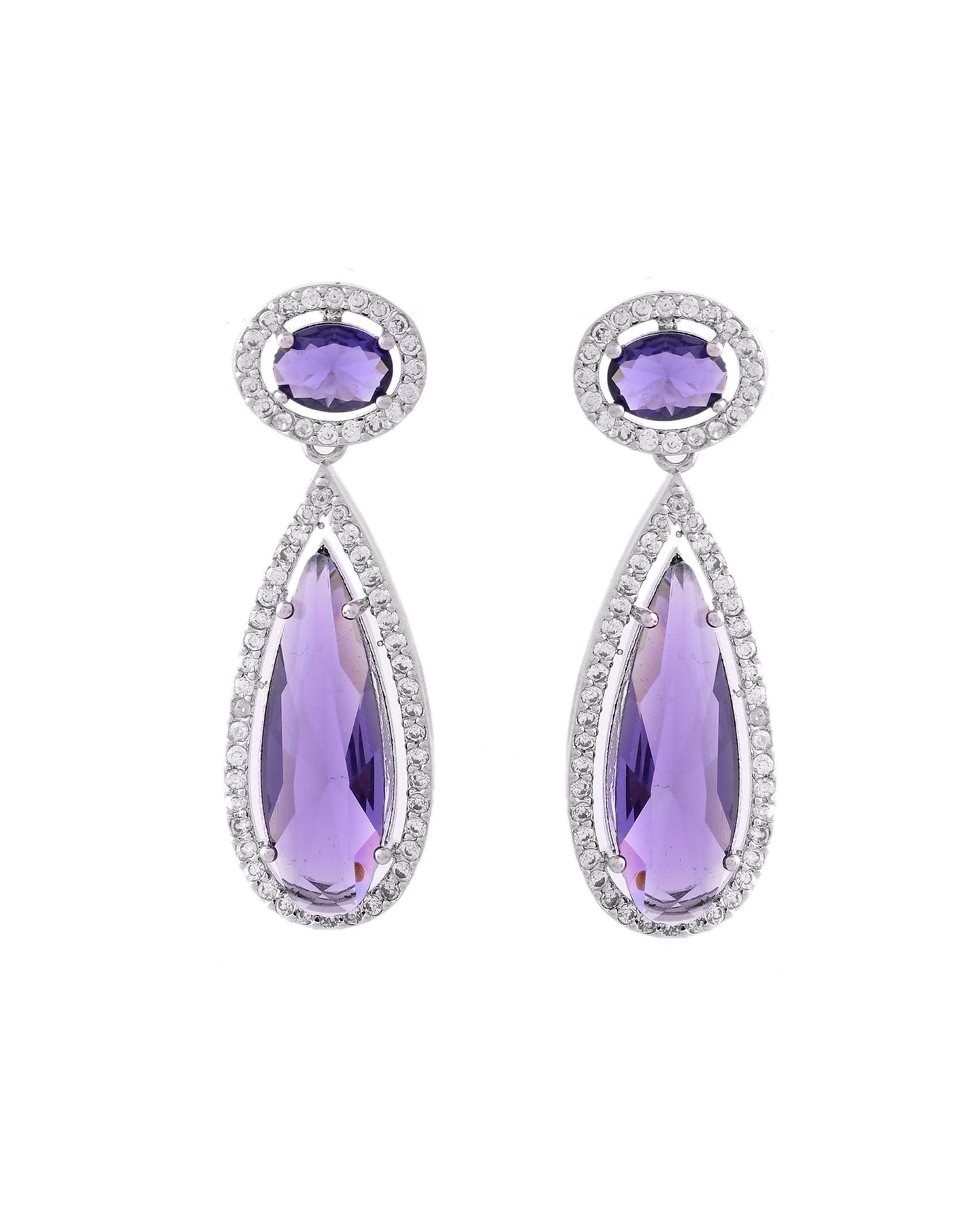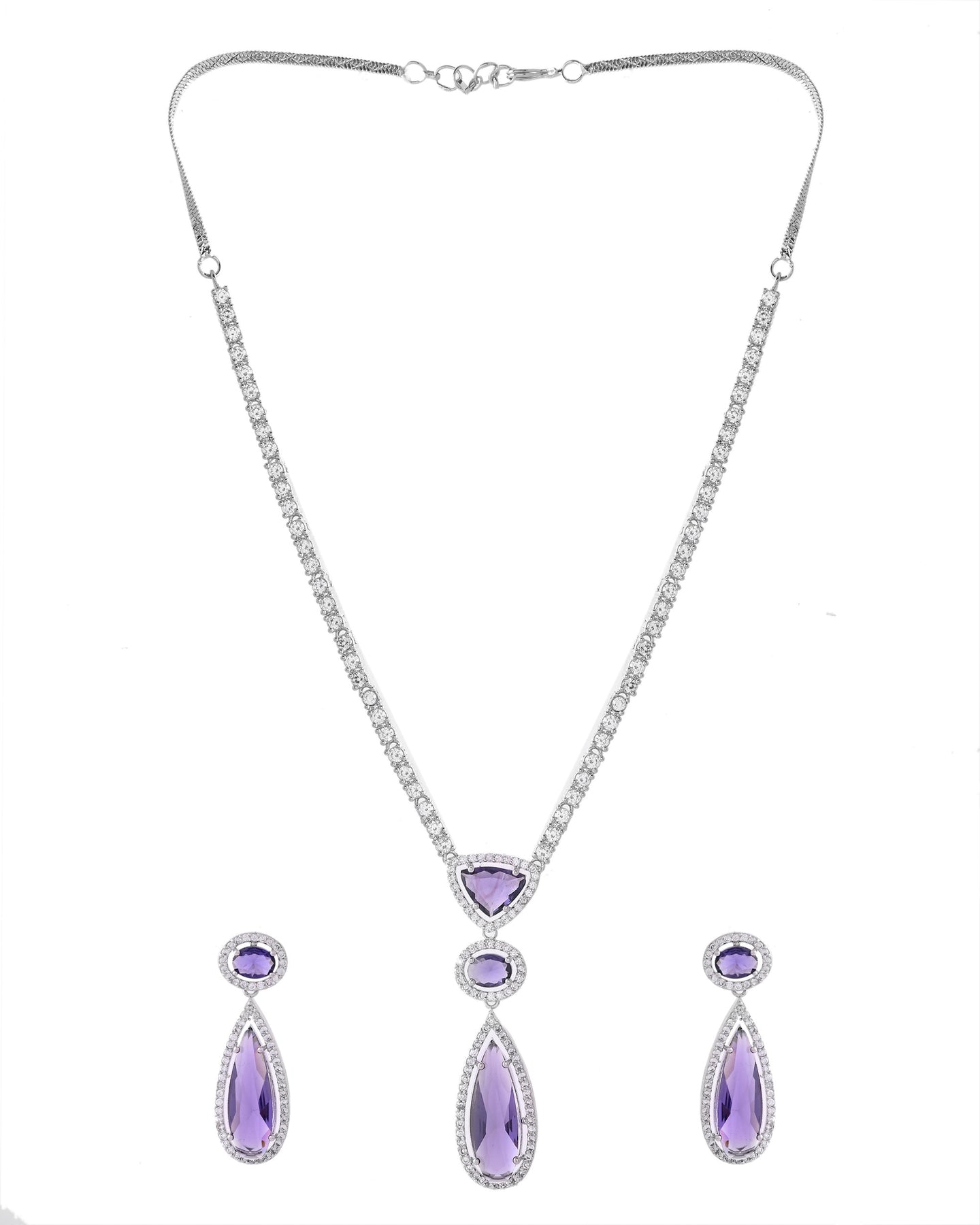Shine Bright With This Silver-Plated Purple Ad & Cubic Zirconia Studded Necklace Set. Featuring Sparkling Purple Ad Stones And Dazzling Cubic Zirconia Accents, It Offers A Perfect Blend Of Vibrant Color And Classic Sparkle. The Silver Plating Ensures Durability And A Polished Finish, While The Lightweight Design Provides Comfortable Wear. Ideal For Festive Occasions And Special Events, This Set Adds A Stunning Touch To Your Look.