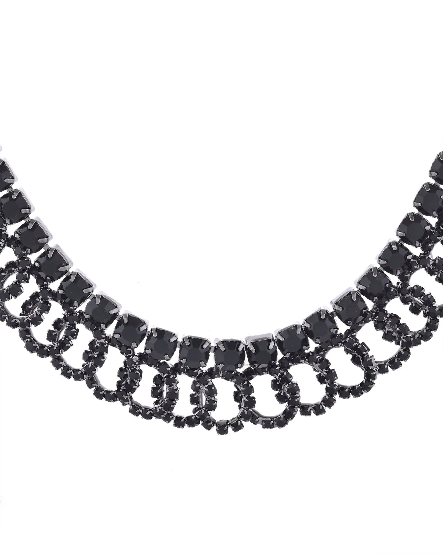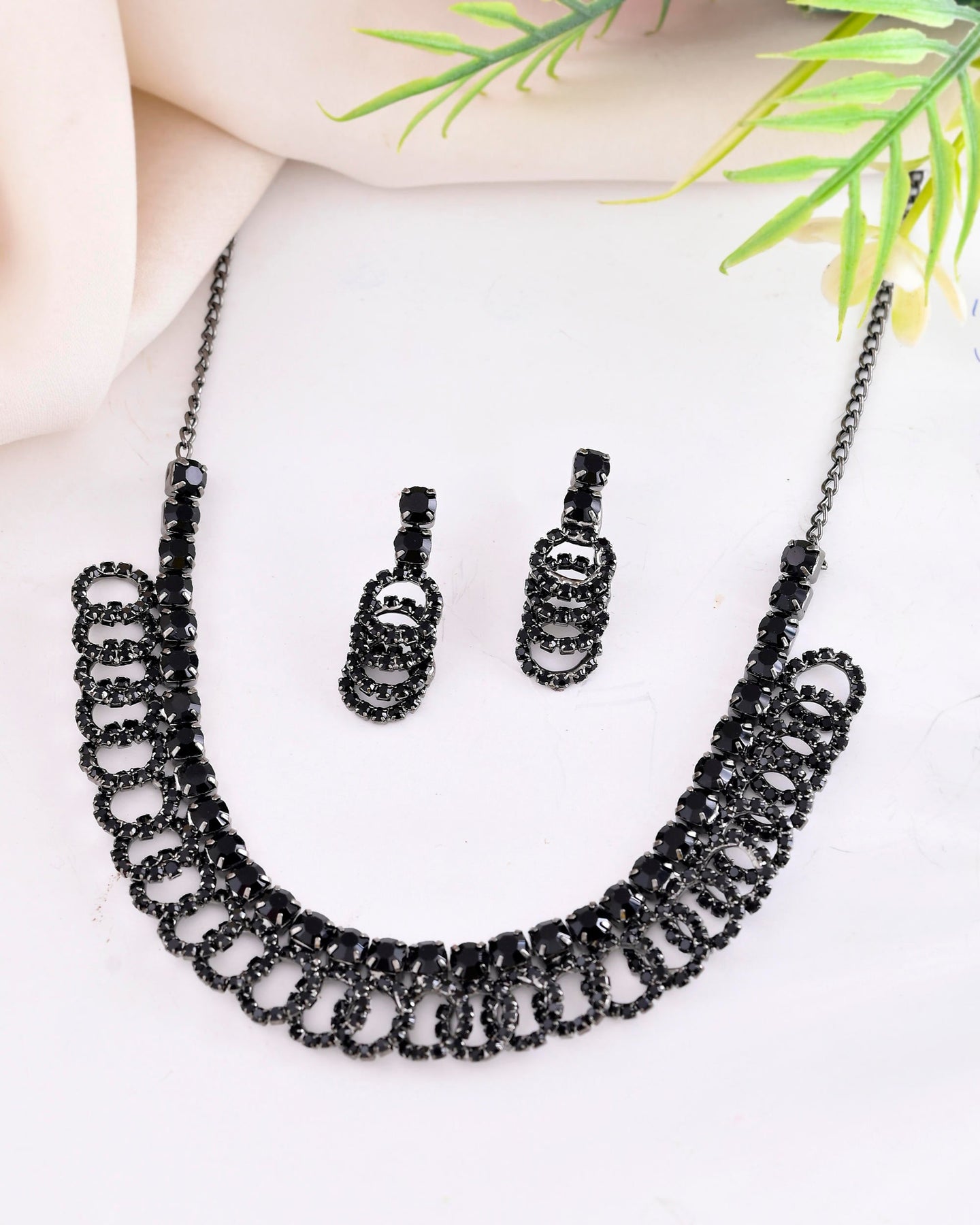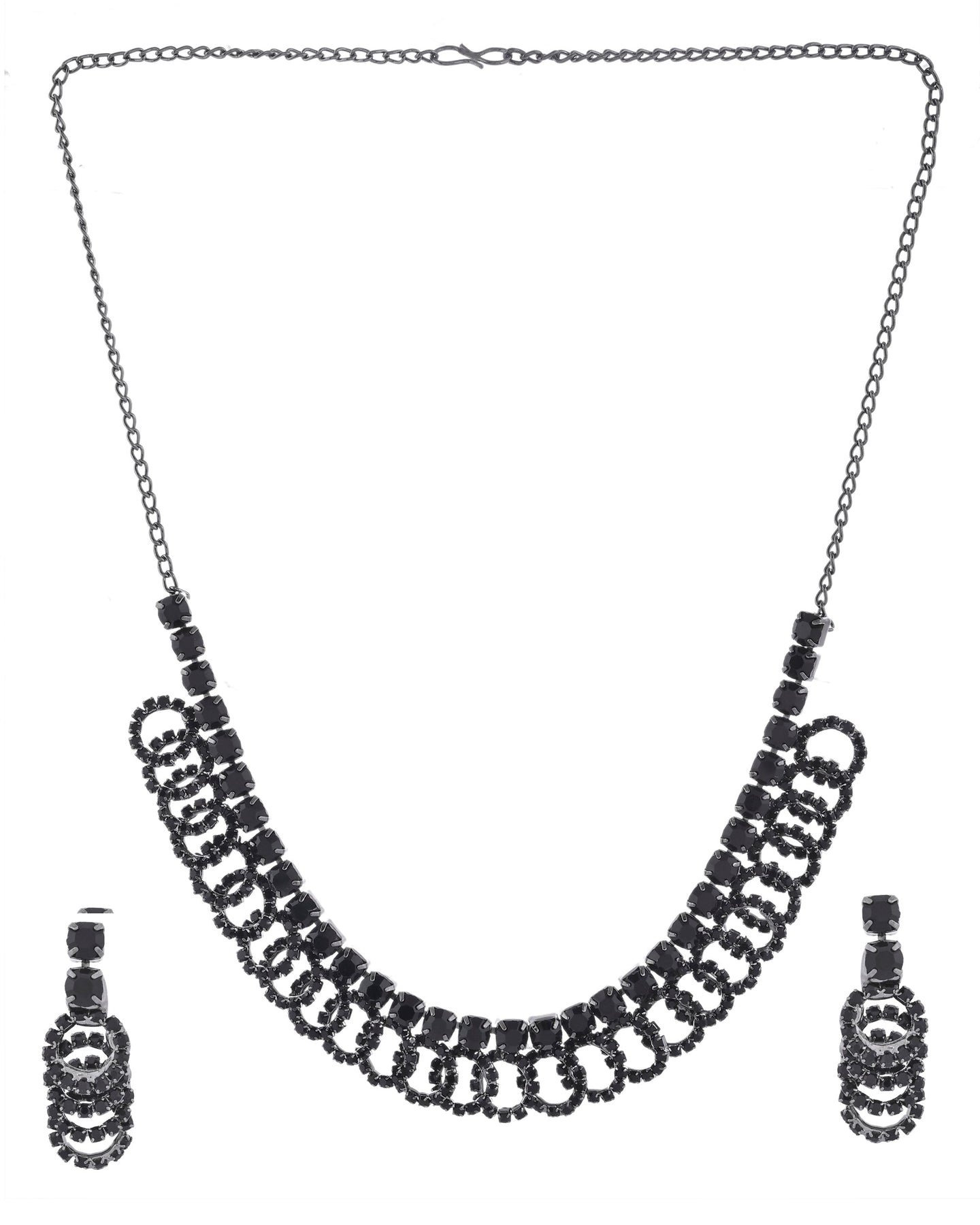 Make A Striking Impression With This Black Circular Stone Studded Jewellery Set. Featuring Bold Black Circular Stones In A Beautifully Crafted Design, This Set Includes A Matching Necklace And Earrings. Perfect For Parties, Formal Events, Or Evening Wear, It Adds A Touch Of Elegance And Mystery To Your Look.