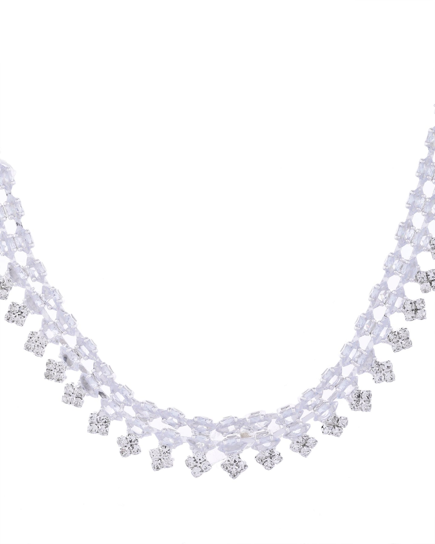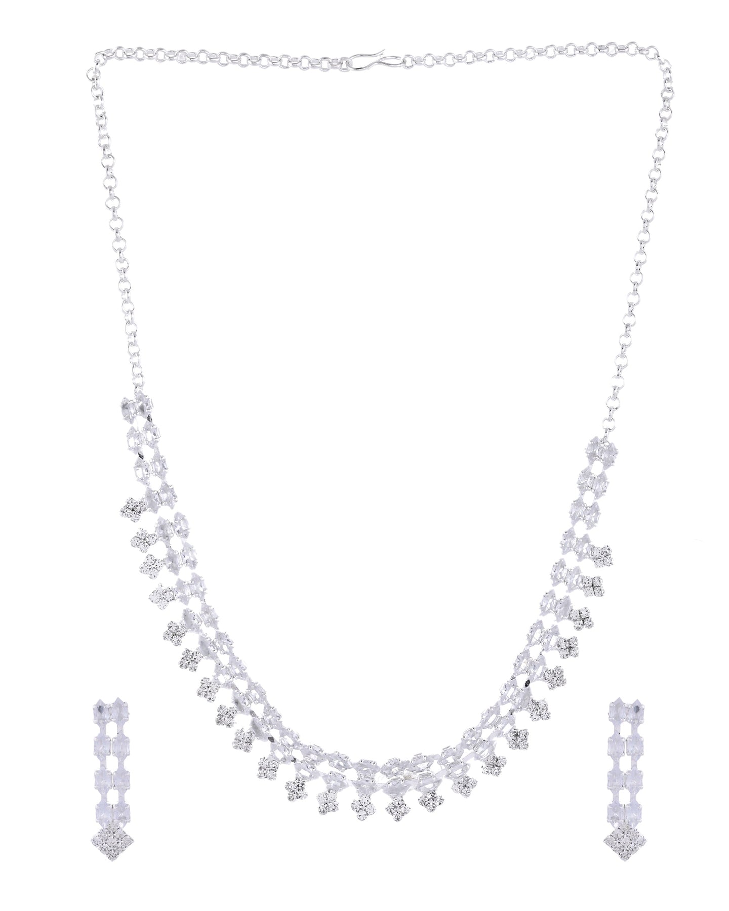 Elevate Your Style With This Silver Plated Cz Stones Studded Necklace Set. Featuring Dazzling Cubic Zirconia Stones Set In A Sleek Silver-Plated Design, This Elegant Set Includes A Beautifully Crafted Necklace And Matching Earrings. Perfect For Weddings, Parties, And Festive Occasions, It Adds A Sparkling Touch Of Sophistication To Any Outfit.