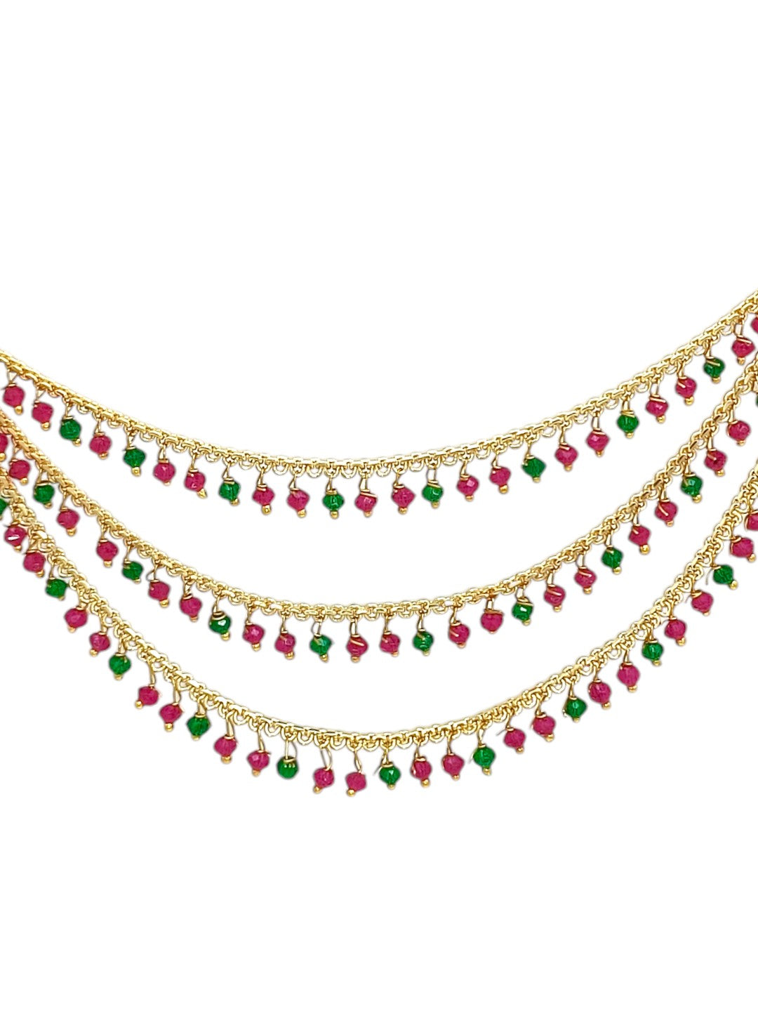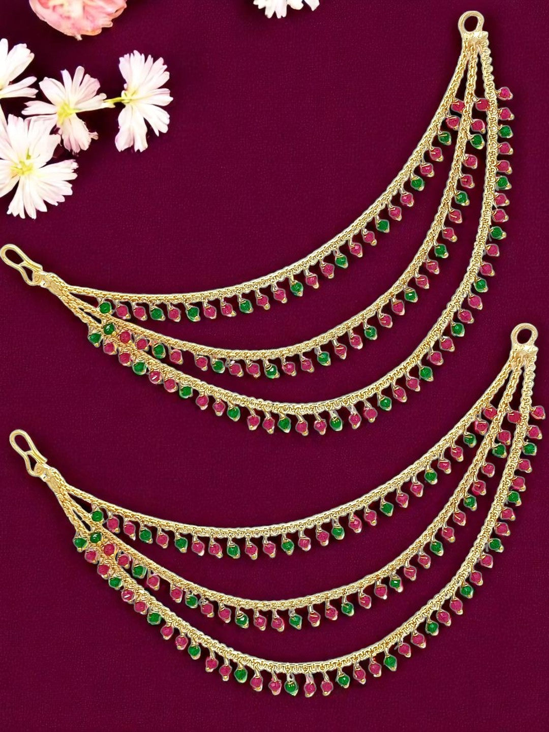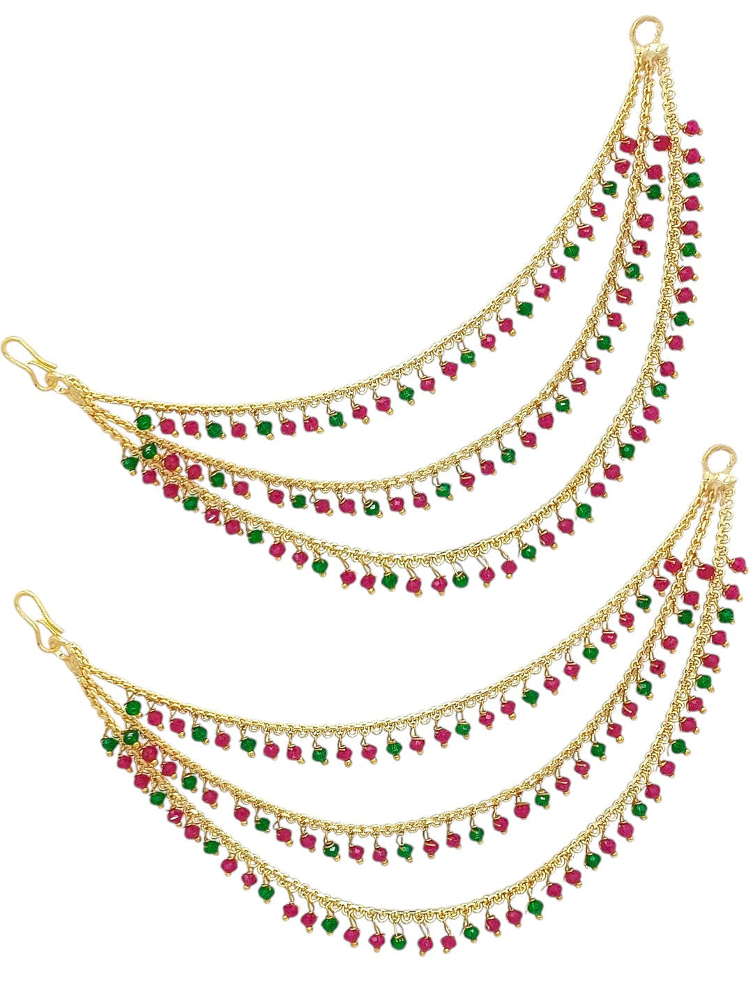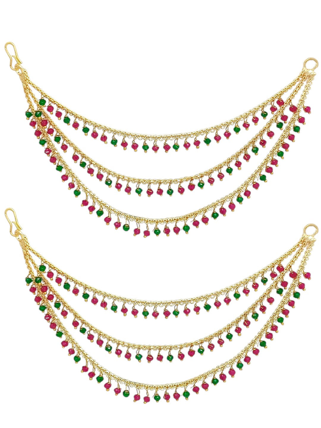 Women's Gold Plated Multi Color Beaded 3 Layered Ear Chain