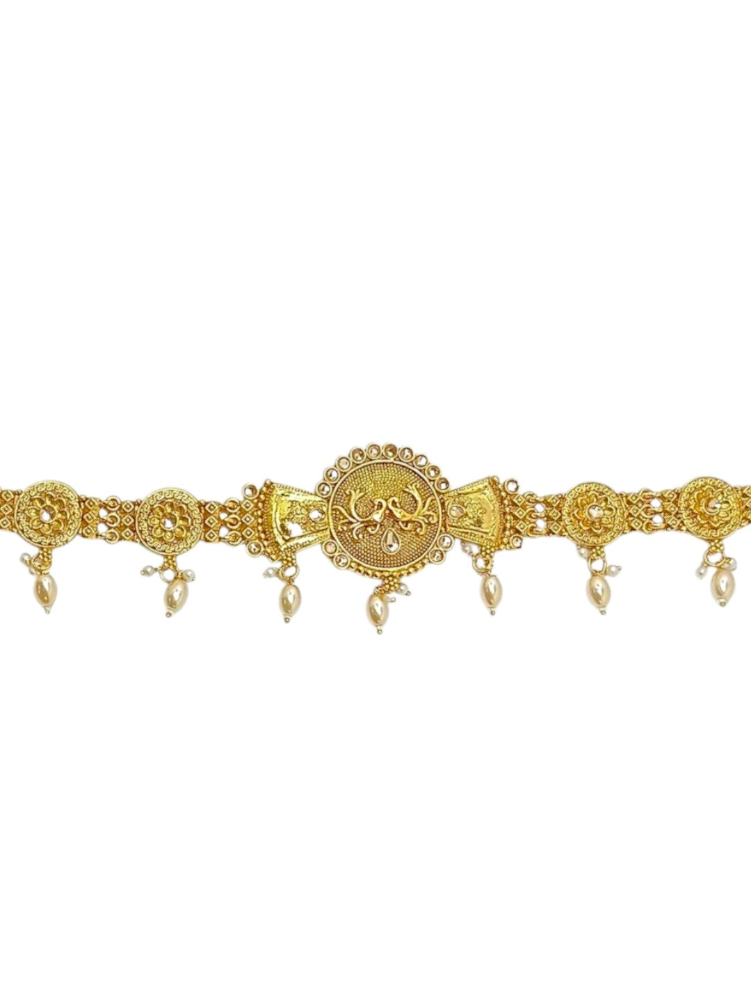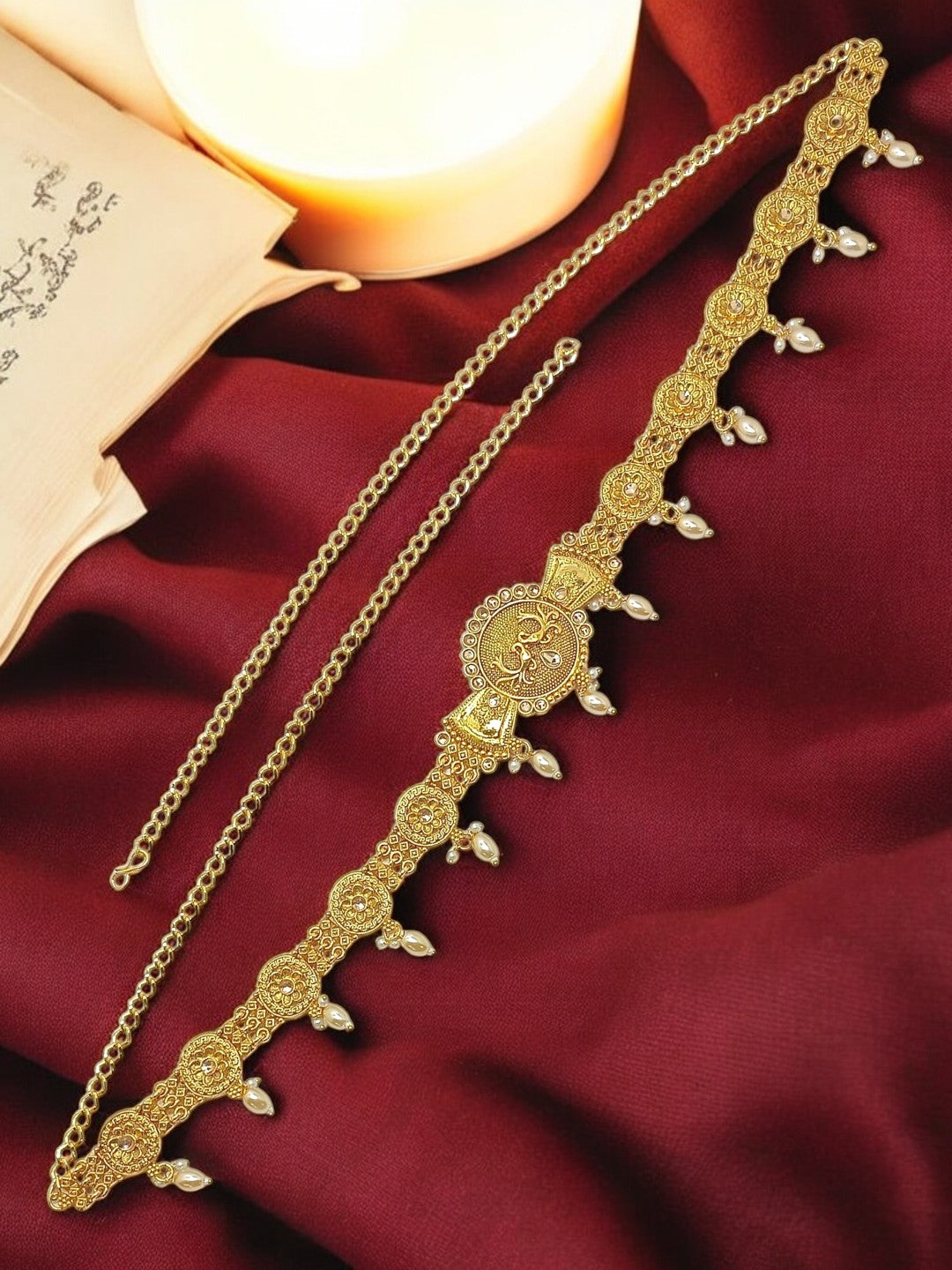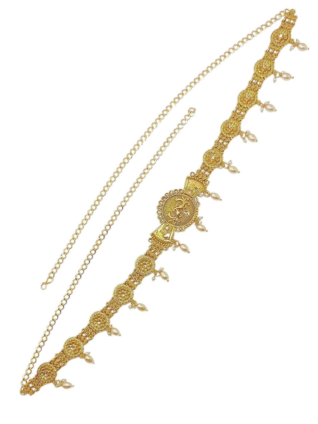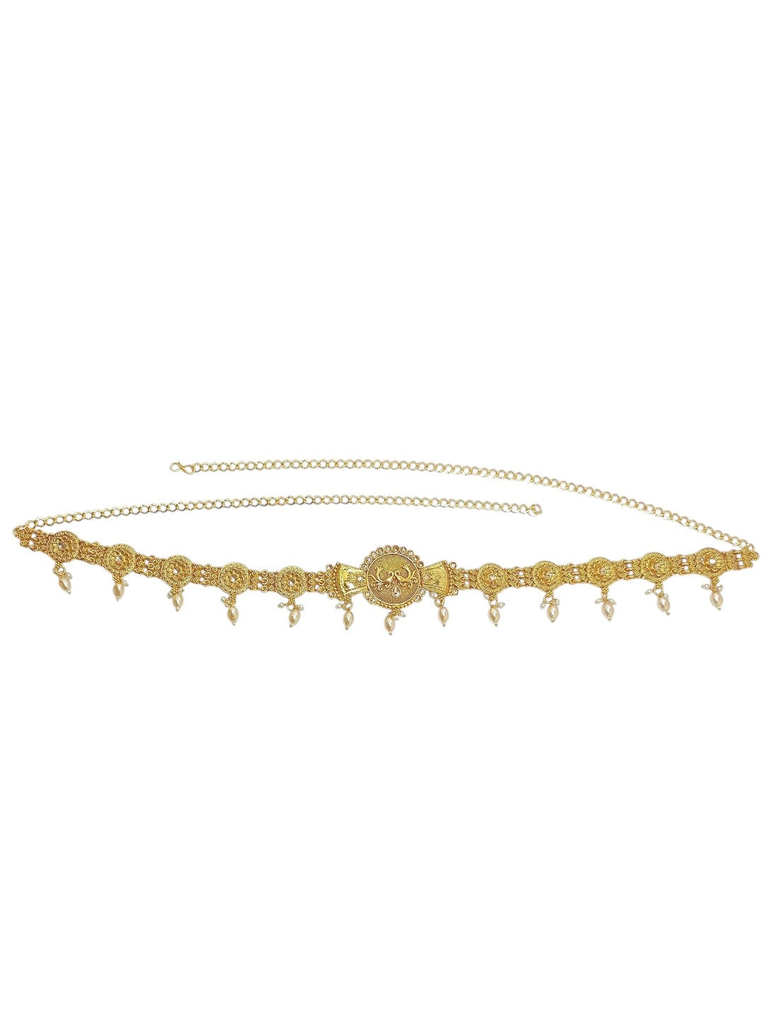 Gold-Toned Round Shape Waist Chain Studded With Artificial Stones And Beads. Secured With S-Hook Closure