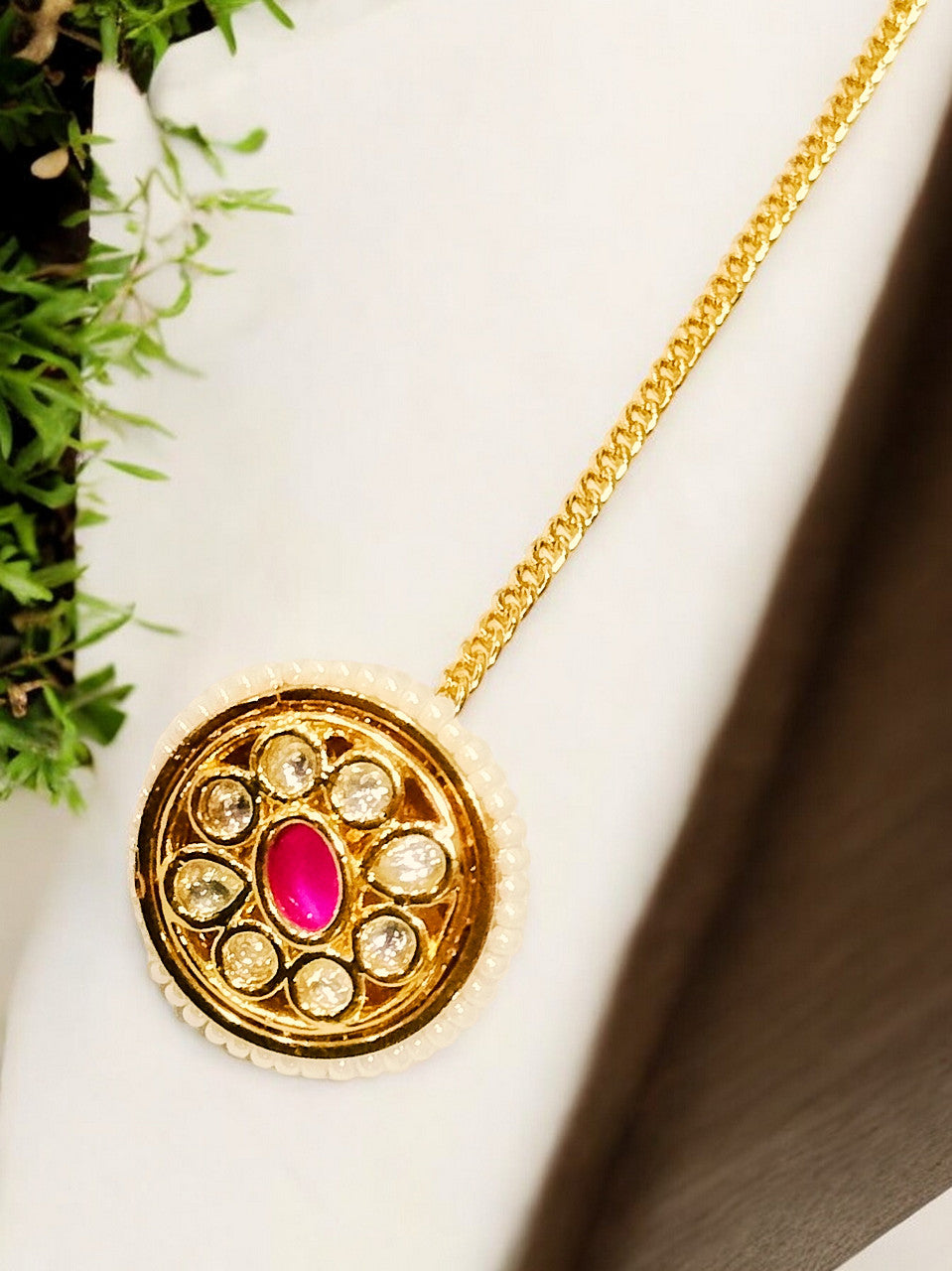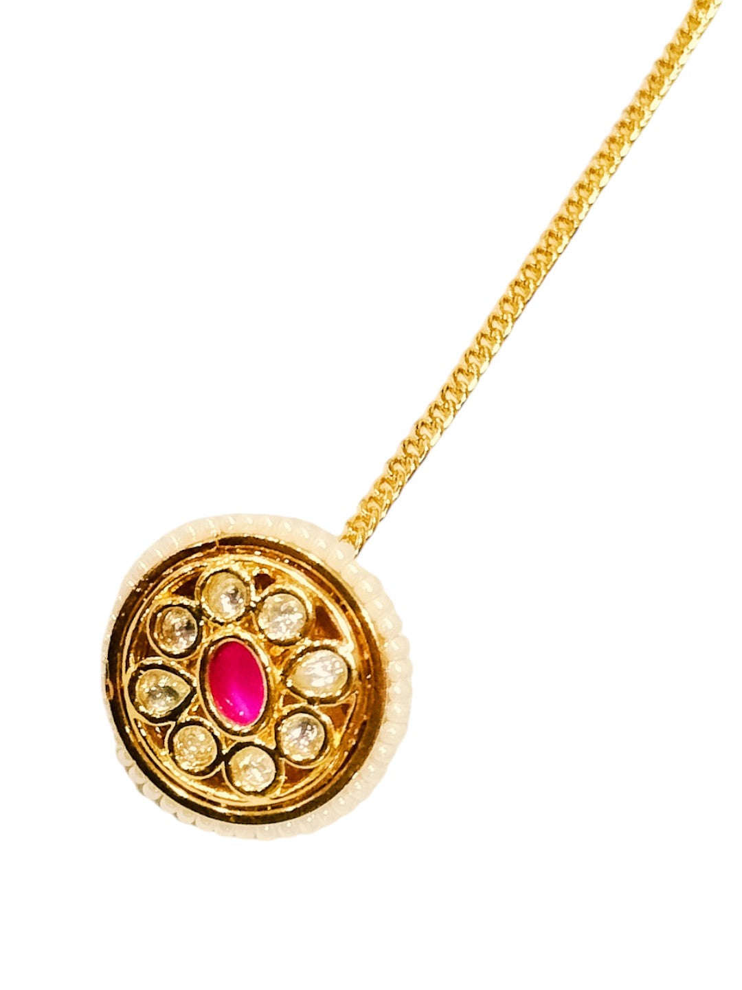 The Kundan Ruby Borla Is A Dazzling Masterpiece That Epitomizes The Grace And Elegance Of Traditional Indian Jewelry. Crafted With Intricate Kundan Work, This Maang Tikka Is A Symbol Of Timeless Beauty And Cultural Heritage.Wearing This Maang Tikka Instantly Elevates Any Ensemble, Whether It'S A Traditional Saree, Lehenga, Or Even A Contemporary Fusion Outfit.