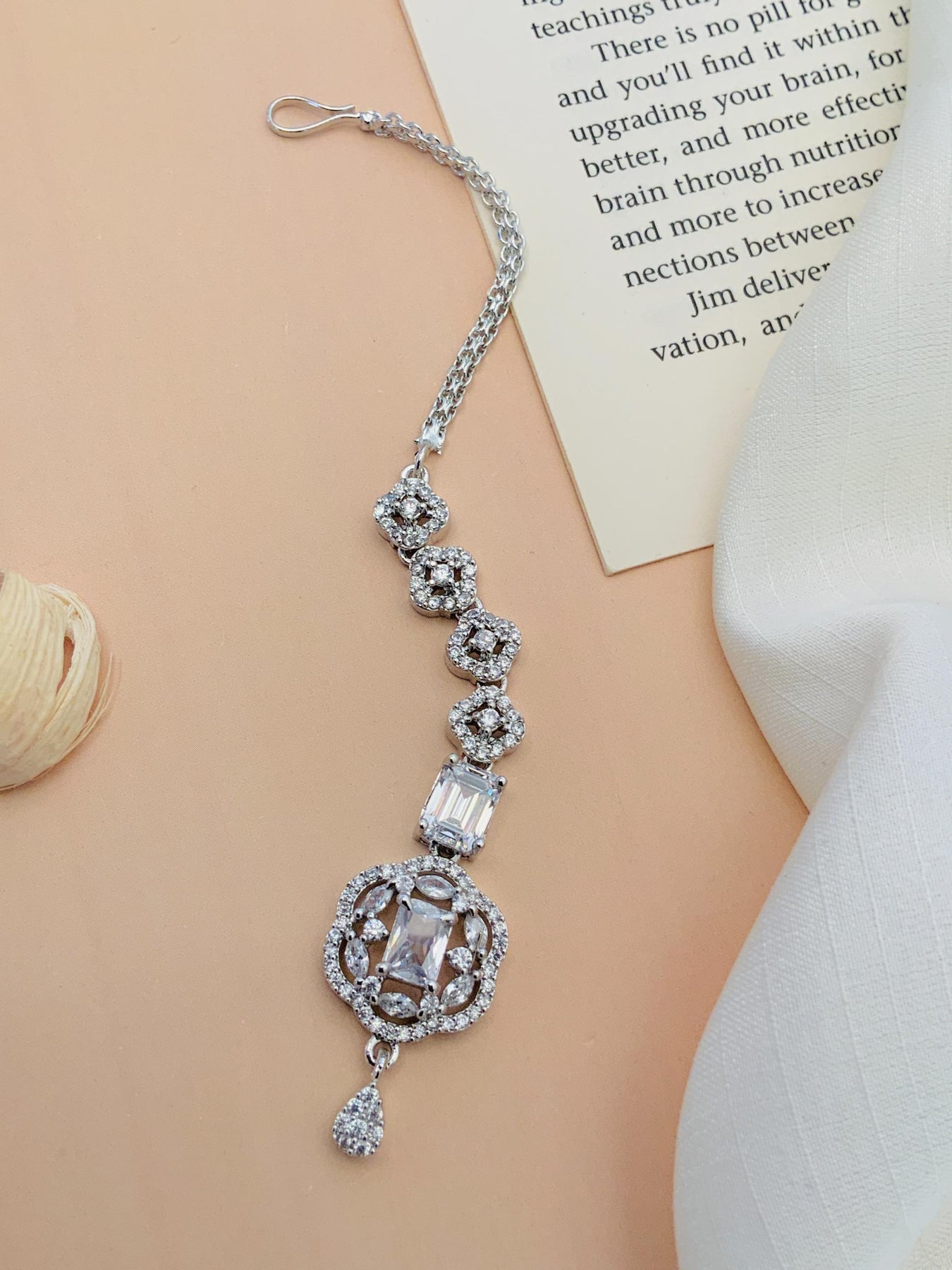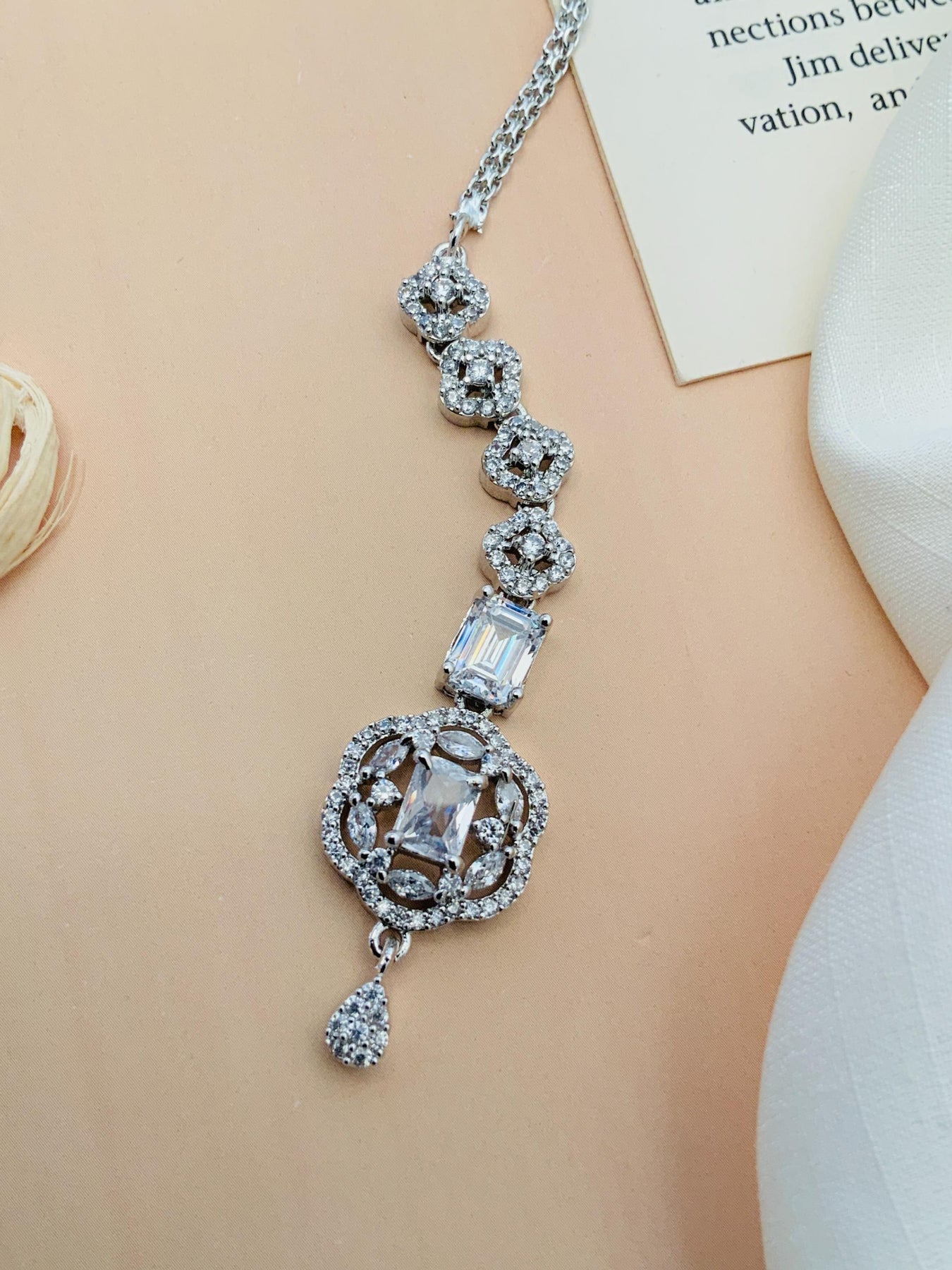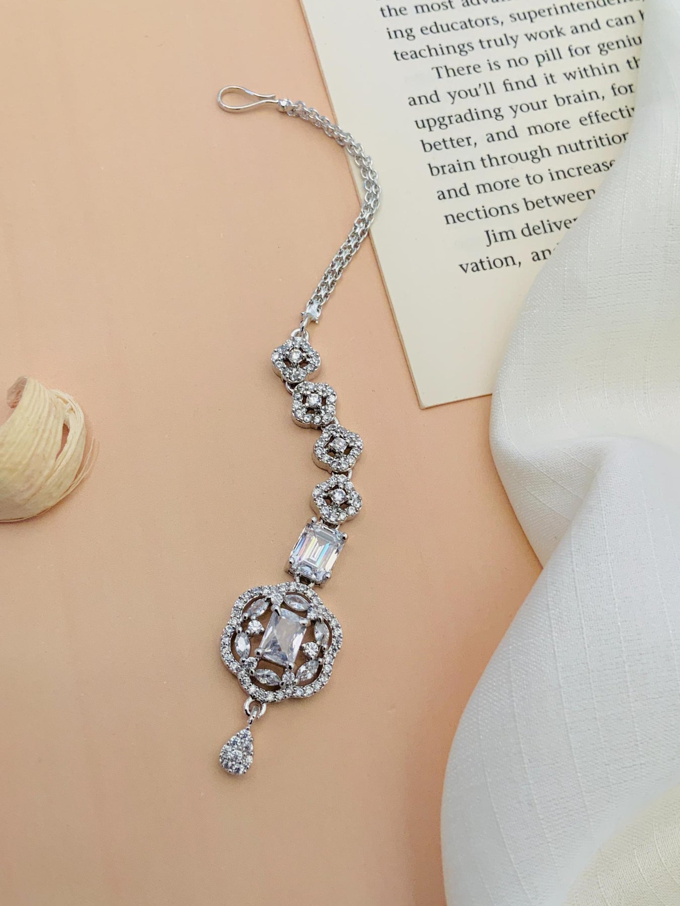 Women's High Quality Silver Plated American Diamond Maangtikka