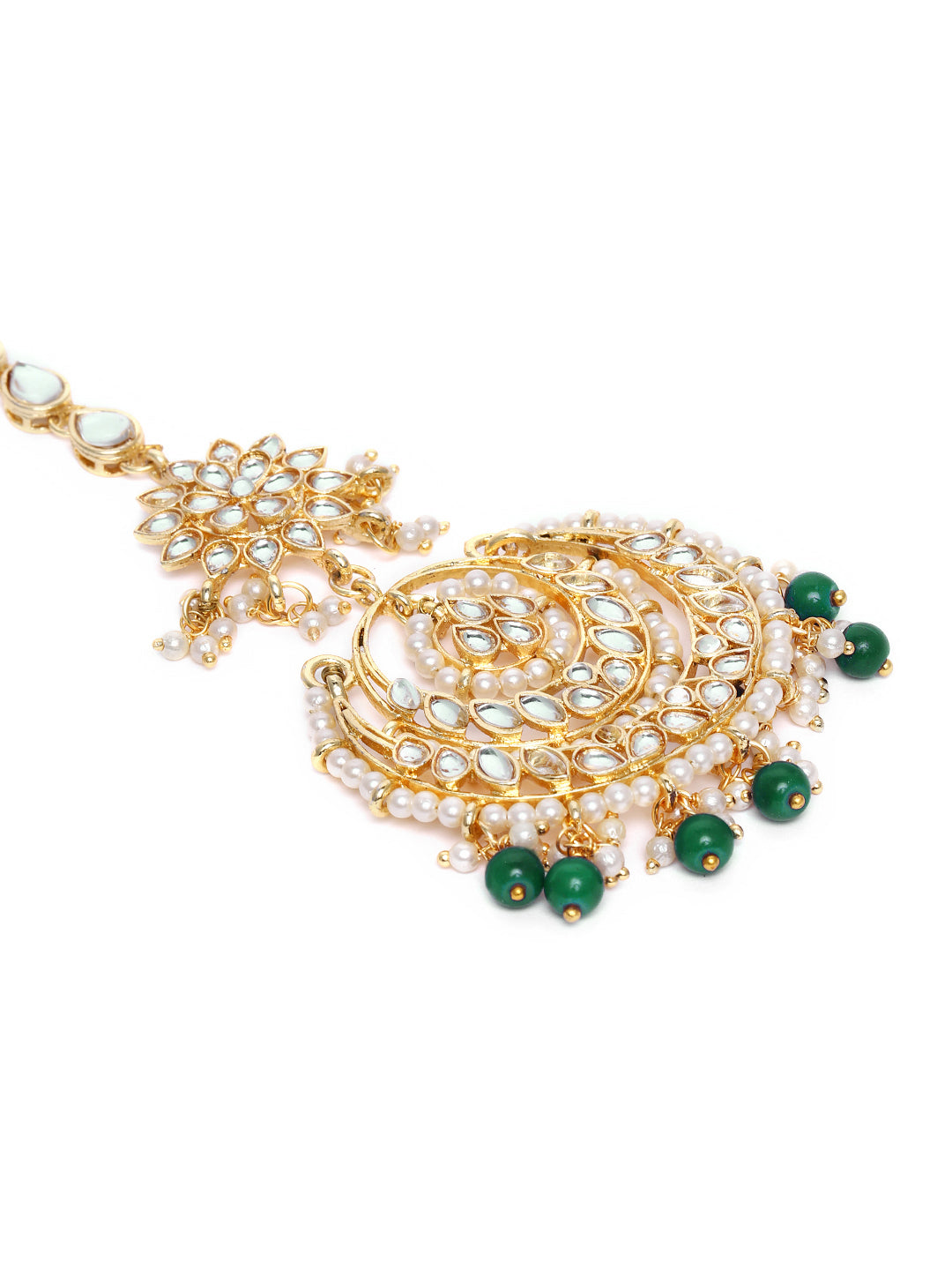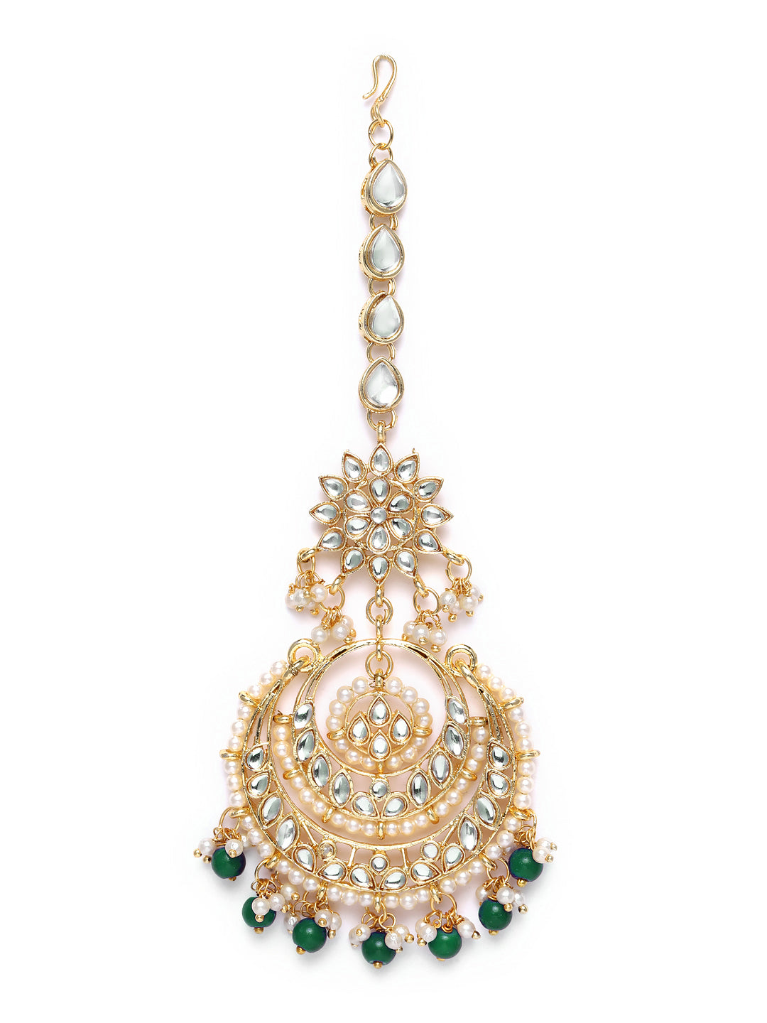 This Maang Tikka Is Crafted In Gold-Plating And Features Kundan Studded In It And Beaded Chain Secured With A Hook Closure. Style This Maang Tika With Your Ethnic Attires To Complete The Look. Perfect Accesory For Your Jewelry Box!