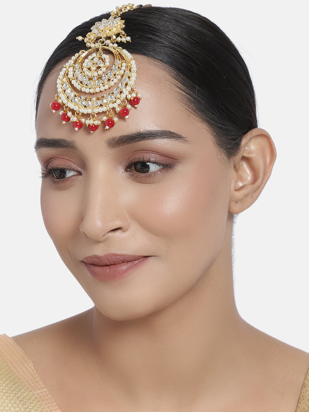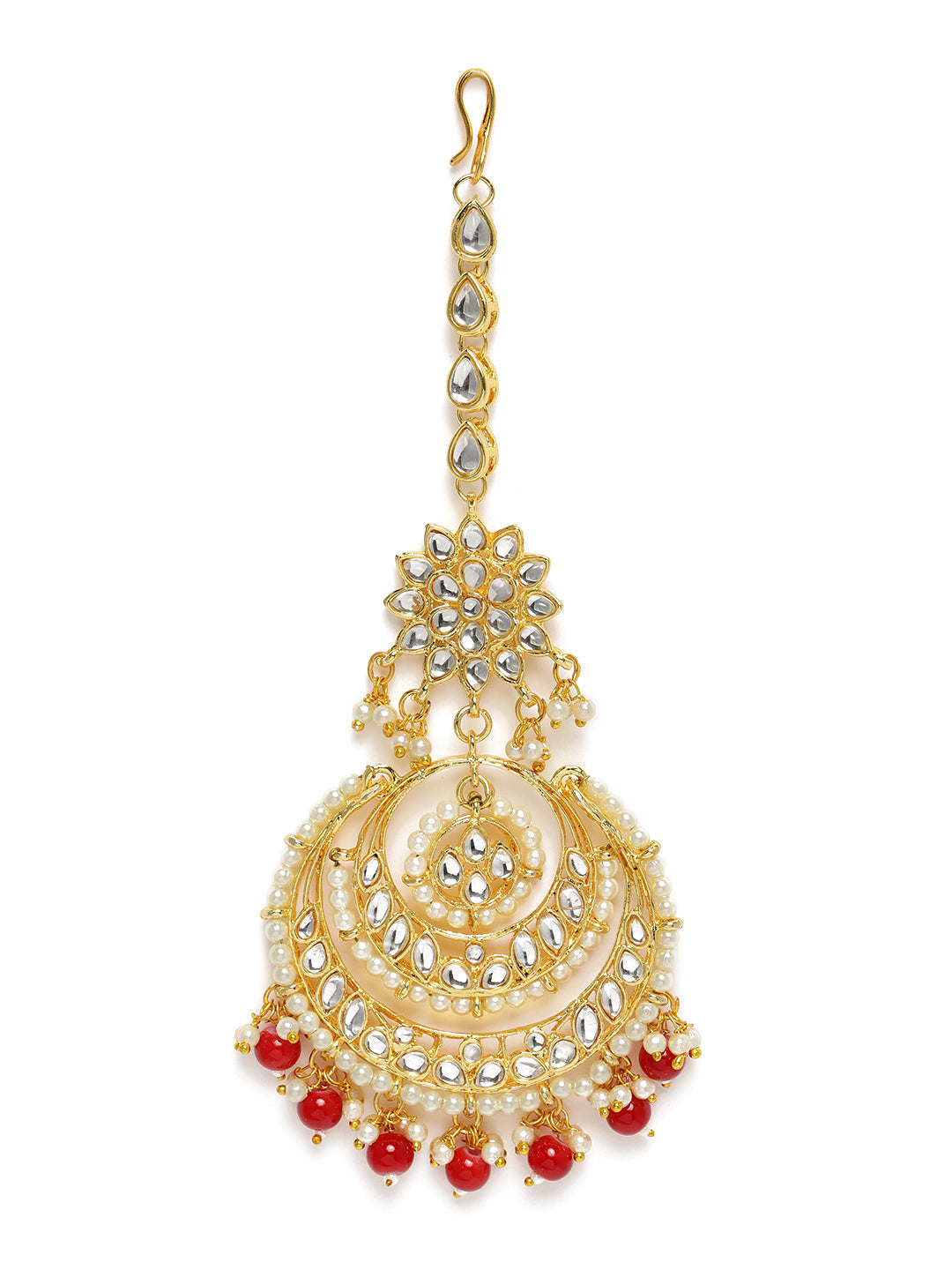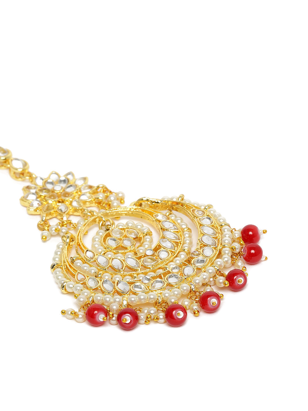 This Maang Tikka Is Crafted In Gold-Plating And Features Kundan Studded In It And Beaded Chain Secured With A Hook Closure. Style This Maang Tika With Your Ethnic Attires To Complete The Look. Perfect Accesory For Your Jewelry Box!