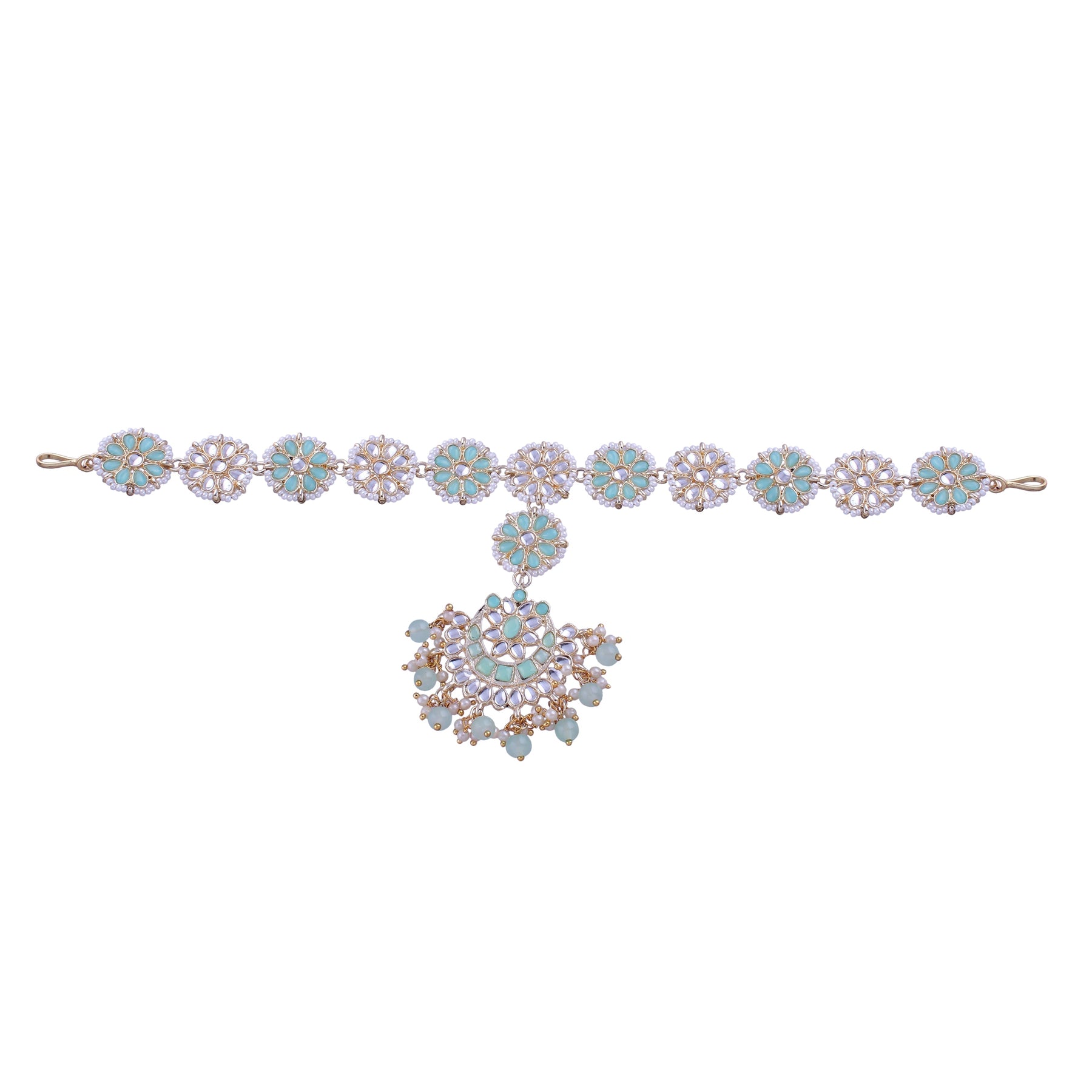 This Is A Stunning And Traditional Piece Of Jewelry That Showcases Intricate Craftsmanship And Luxurious Materials. The Piece Features A Floral Design That Is Inspired By The Traditional Rajasthani Style, Which Is Known For Its Bold And Intricate Motifs. The Base Material Of The Jewelry Is Gold-Plated, Which Adds A Lustrous And Rich Look To The Piece. The Gold Plating Also Ensures That The Piece Is Long-Lasting And Durable. The Floral Design Is Then Embellished With Kundan, A Type Of Traditional Indian Gemstone Setting Technique That Involves Setting Uncut Stones In A Frame Of Gold Plated. The Kundan Stones Used In This Piece Are Of High Quality And Add A Sparkling And Elegant Touch To The Overall Design. In Addition To The Kundan Stones, The Piece Is Also Studded With Pearls, Which Are Known For Their Classic And Timeless Beauty. The Pearls Used In This Piece Are Of High Quality And Have A Lustrous And Smooth Surface That Adds To The Overall Luxurious Look Of The Jewelry. Overall, This Piece Is A Beautiful And Traditional Addition To Any Jewelry Collection. Its Intricate Design, High-Quality Materials, And Attention To Detail Make It A True Work Of Art. Whether Worn For A Special Occasion Or As An Everyday Accessory, This Jewelry Is Sure To Make A Statement And Leave A Lasting Impression.