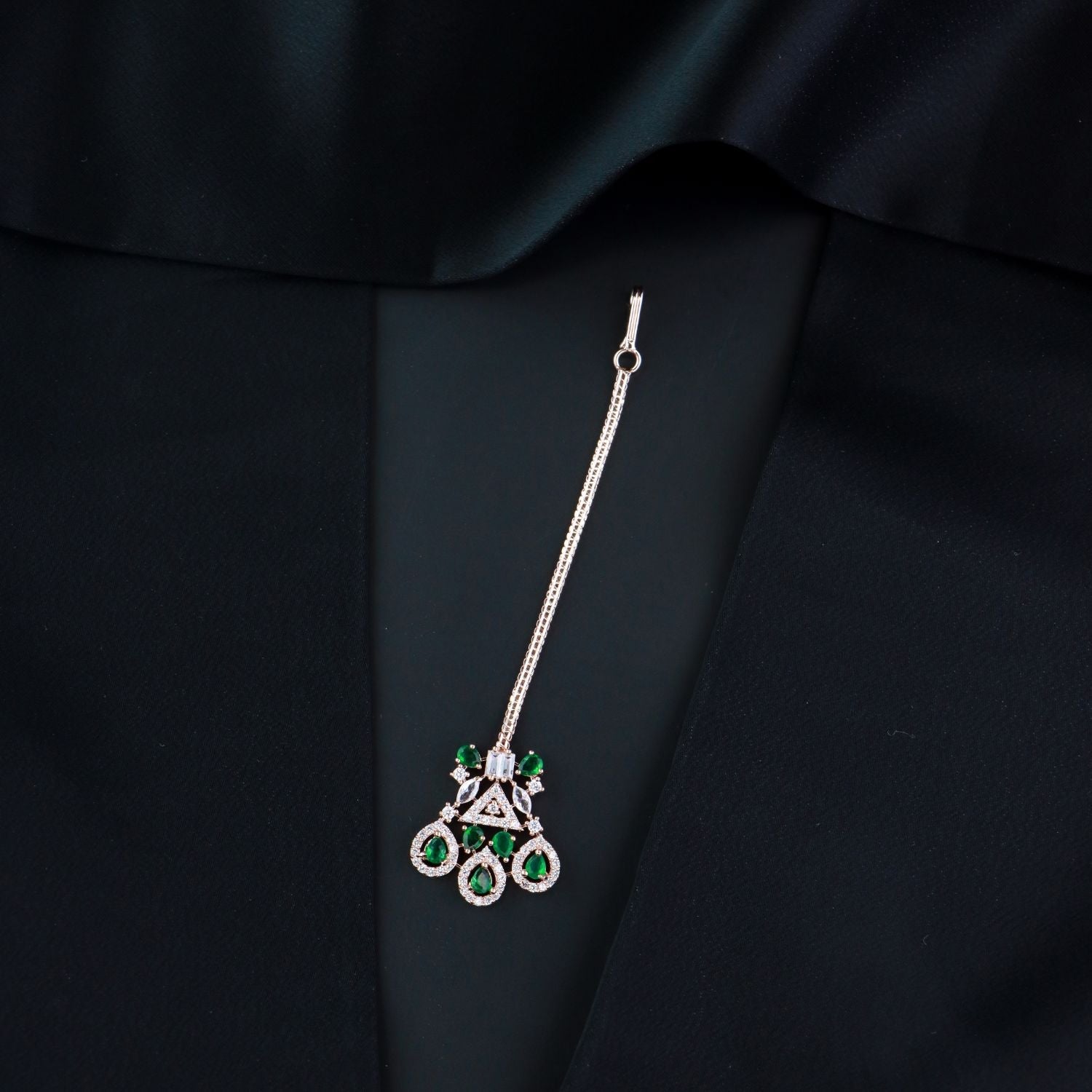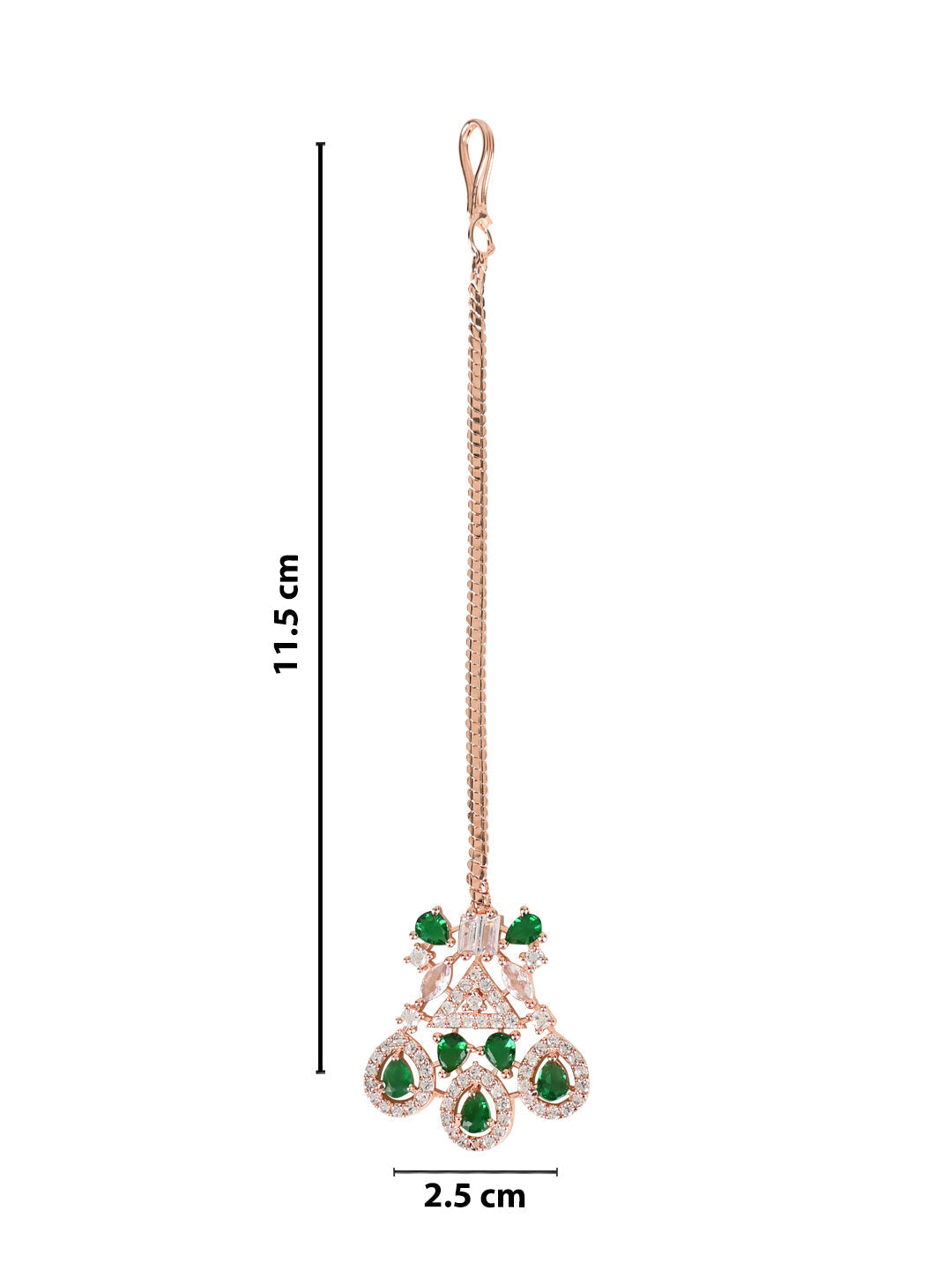 Women's Rose Gold Plated Elegant Beautiful Ad & Cz Studded Crystal Maang Tikka