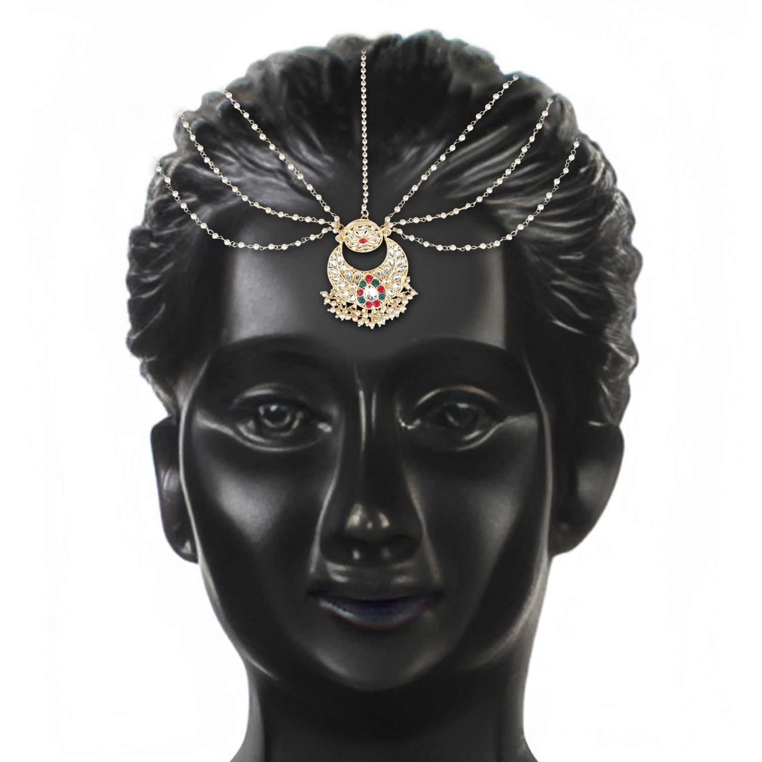 This Maathapatti Is Crafted In Gold Plated Finish With Stunning Antique Finish - These Maathapatti Are Really Special .The Maathapatti Feature Stone-Studded With Pearls. Be Stylish And Smart With These Golden Maathapatti. Perfectly Crafted. Wear It With A Suit Or A Saree, And Lehenga For An Ethnic Yet Classy Look. Ideal Valentine, Birthday, Anniversary Gift Your Loved Ones. Women Love Jewelry, Specially Traditional Jewellery Adore A Women. They Wear It On Different Occasion, Wedding And Festive Time. They Can Also Wear It On Regular Basics.