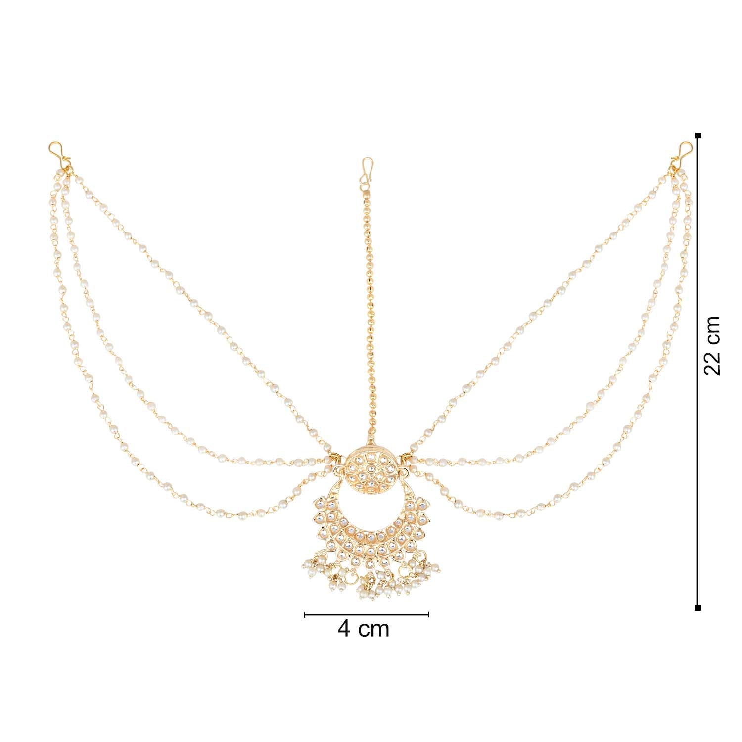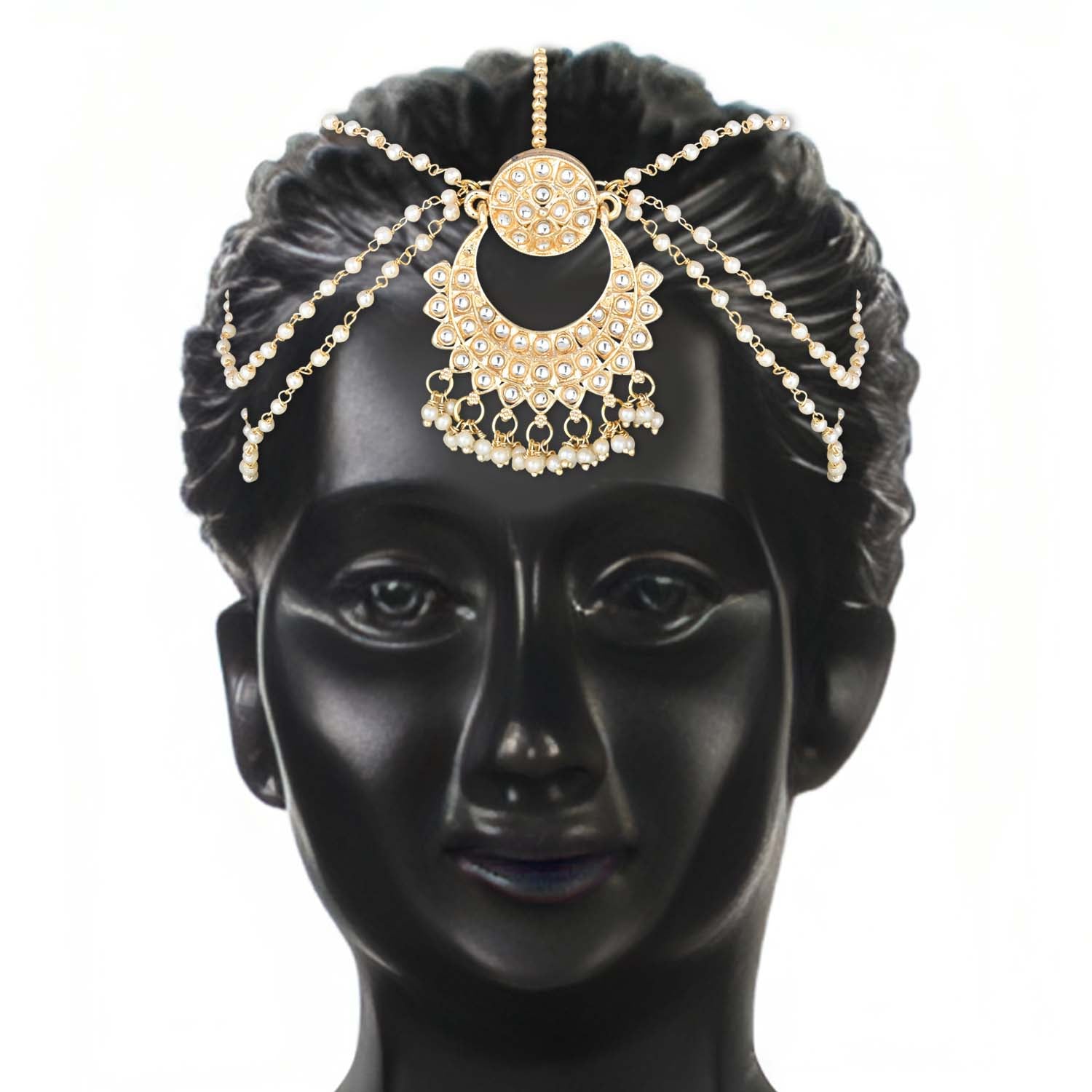 This Maathapatti Is Crafted In Gold Plated Finish With Stunning Antique Finish - These Maathapatti Are Really Special .The Maathapatti Feature Stone-Studded With Pearls. Be Stylish And Smart With These Golden Maathapatti. Perfectly Crafted. Wear It With A Suit Or A Saree, And Lehenga For An Ethnic Yet Classy Look. Ideal Valentine, Birthday, Anniversary Gift Your Loved Ones. Women Love Jewelry, Specially Traditional Jewellery Adore A Women. They Wear It On Different Occasion, Wedding And Festive Time. They Can Also Wear It On Regular Basics.