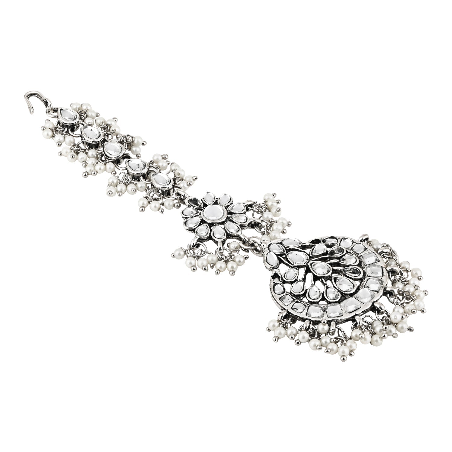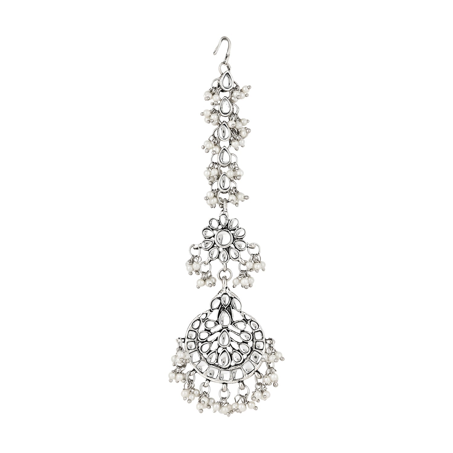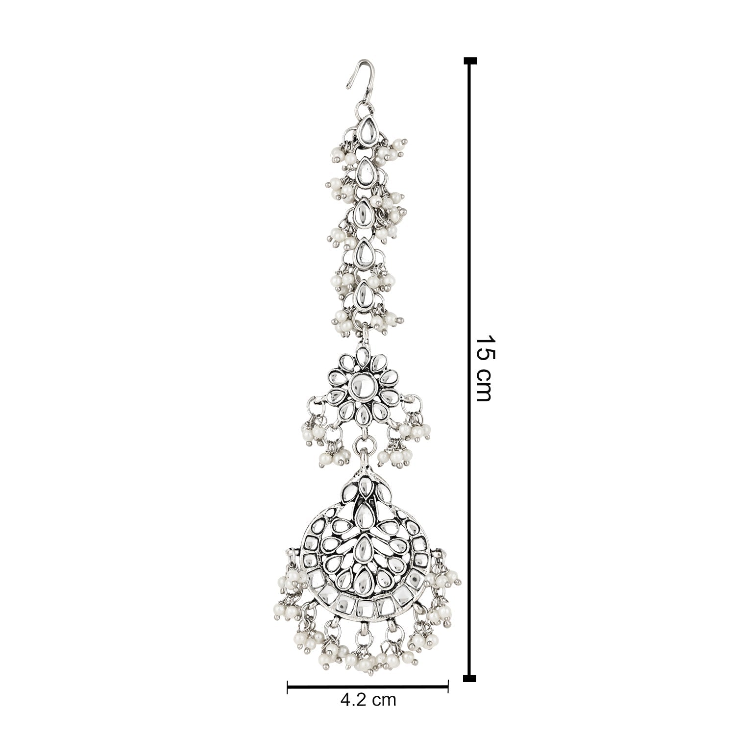 Elevate Your Navratri Look With The I Jewels Navratri Special Ethnic Ailver Oxidized Mathapatti, Thoughtfully Crafted To Add A Touch Of Tradition And Elegance To Your Festive Attire. This Exquisite Headpiece Is A Stunning Blend Of Timeless Design And Modern Flair, Perfect For Women And Girls Alike. Handcrafted With Care, This Mathapatti Showcases The Beauty Of Silver Oxidized Metal, Offering A Unique Blend Of Durability And Sophistication. The Intricate Design Features Delicate Ghungroo Embellishments, Creating A Melodious Jingle As You Move, Enhancing Your Festive Experience. Designed To Capture The Essence Of Navratri, This Mathapatti Symbolizes Grace, Tradition, And Festivity. It'S An Ideal Accessory To Complement Your Chaniya Choli Or Lehenga Ensemble, Enhancing Your Overall Appearance. Whether You'Re Participating In The Garba Dance Or Attending Dandiya Nights, This Headpiece Will Make You Stand Out With Its Captivating Charm. The Adjustable Chain At The Back Ensures A Comfortable And Secure Fit, Allowing You To Focus On The Celebrations Without Any Worries. The Headpiece Is Lightweight And Easy To Wear, Ensuring You Stay Comfortable Throughout The Festivities.