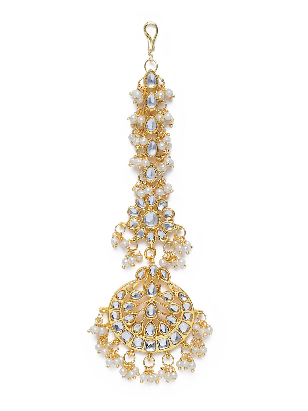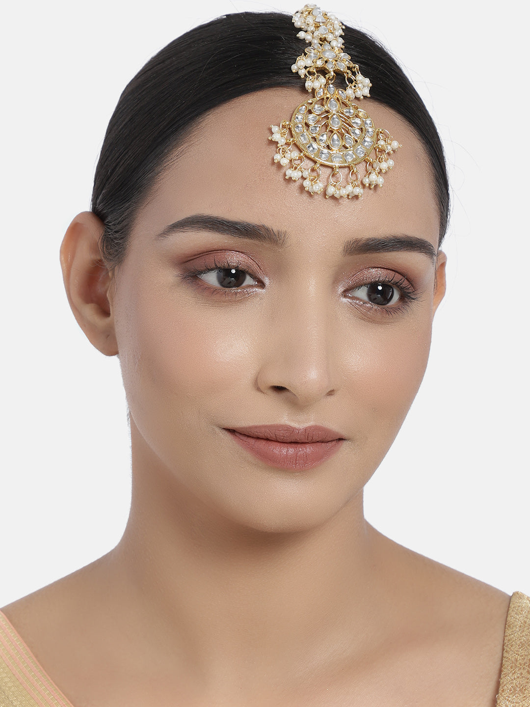 This Maang Tikka/Passa Is Crafted In 18K Gold-Plating And Features Kundan Studded In It And Secured With A Hook Closure. Style This As Maang Tikka Or Passa With Your Ethnic Attires To Complete The Look. Perfect Accesory For Your Jewelry Box!