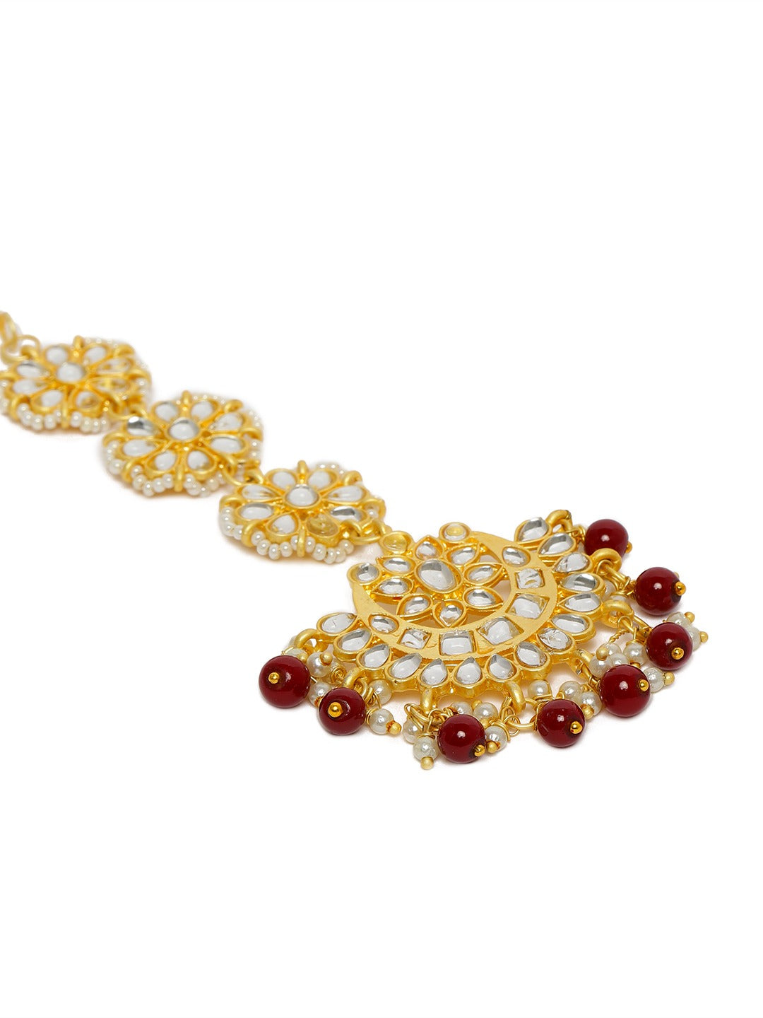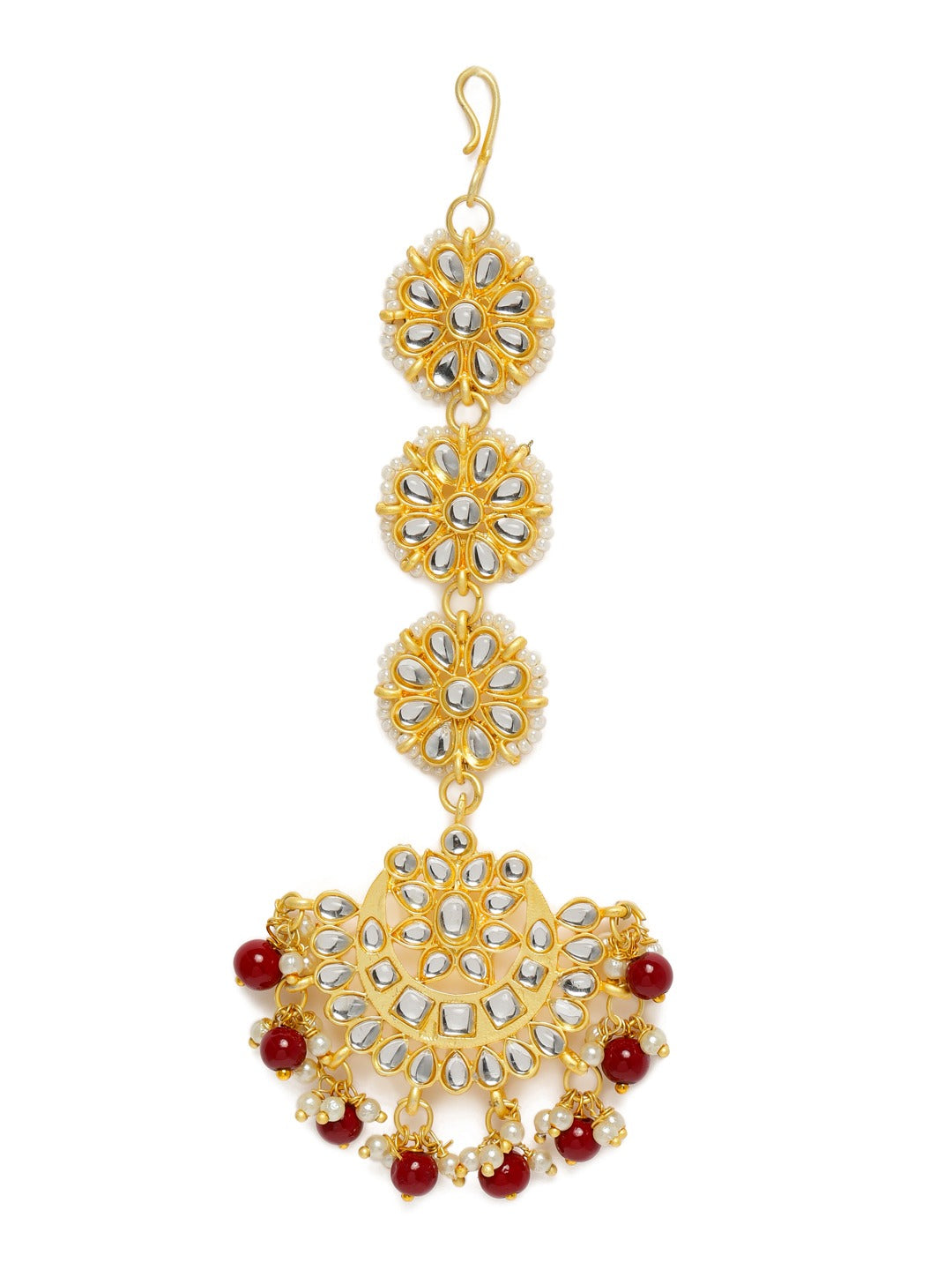 This Maang Tikka Is Crafted In 18K Gold-Plating And Features Kundan Studded In It And Secured With A Hook Closure. Style This As Maang Tikka Or Passa With Your Ethnic Attires To Complete The Look. Perfect Accesory For Your Jewelry Box!