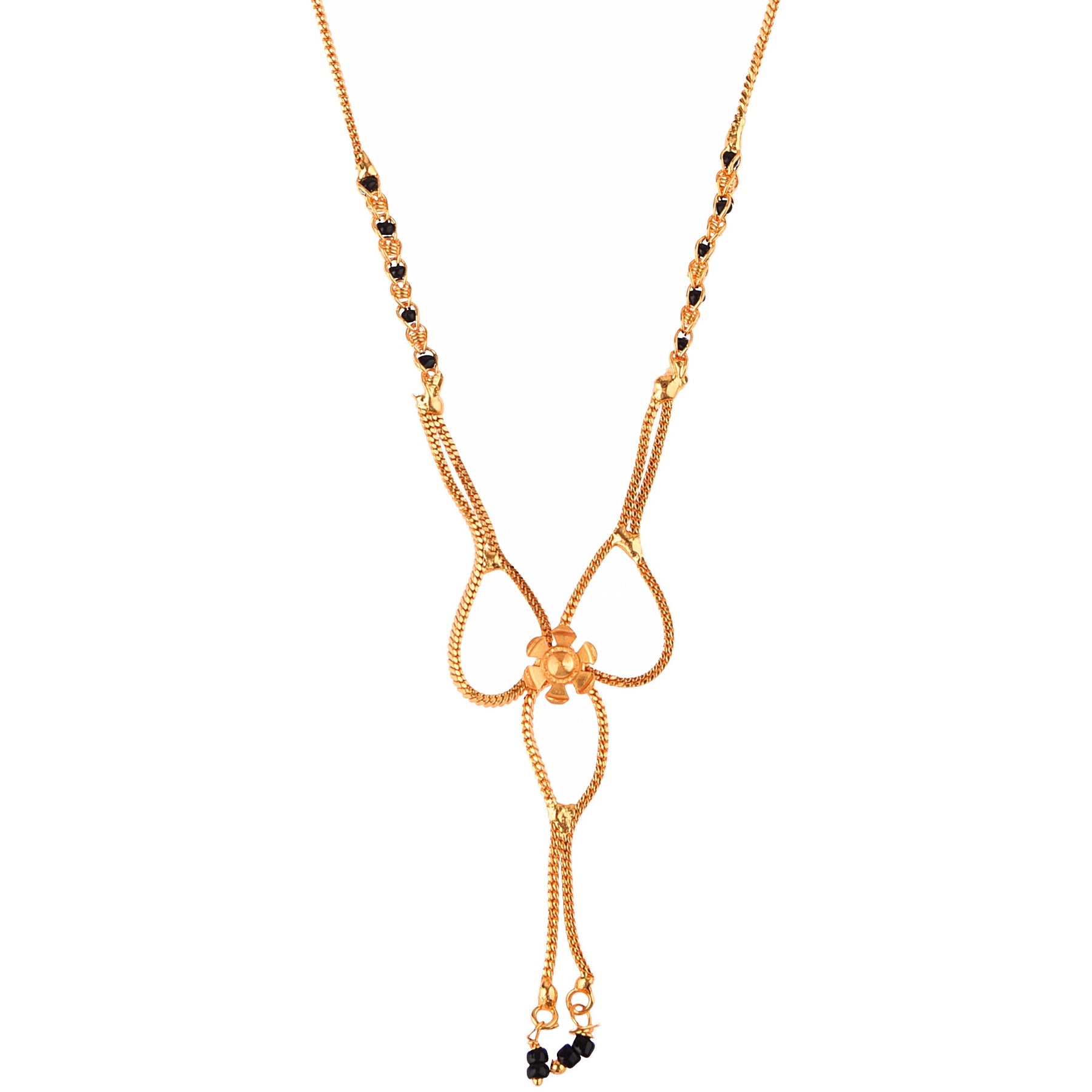 This Traditional Antique Mangalsutra For Your Accessories Collection. These Gold Plated Alloy Latest Embedded With Black Bead Long Mangalsutra With Bow Style Pendant With The Finest Sparkling Latest Style And Shades To Match Your Personality. It Comes In Many Variations Of Design And Works.