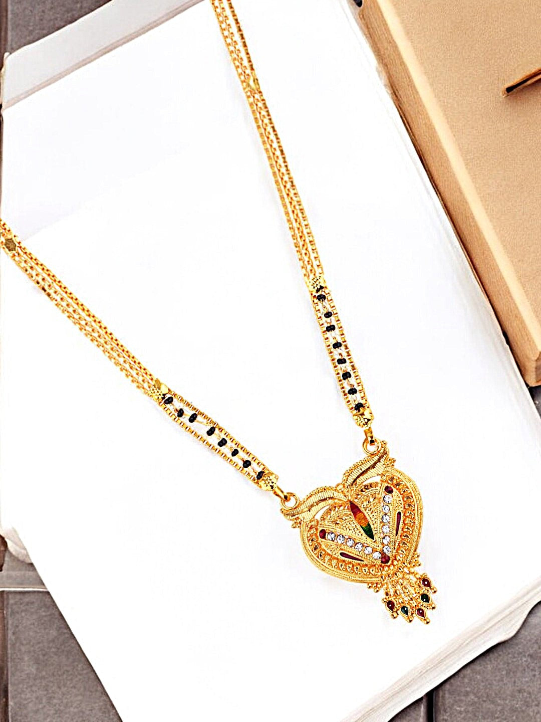 This Traditional Era Of Jewelry Is The Perfect Blend Of Tradition And Modernity That Looks Sophisticated Yet Conventional. These Mangalsutra Set Are Suitable For Women Of All Ages.This Gold Plated Mangalsutra Features A Classic Pattern With Meenakari Work And Cubic Zirconia Stone