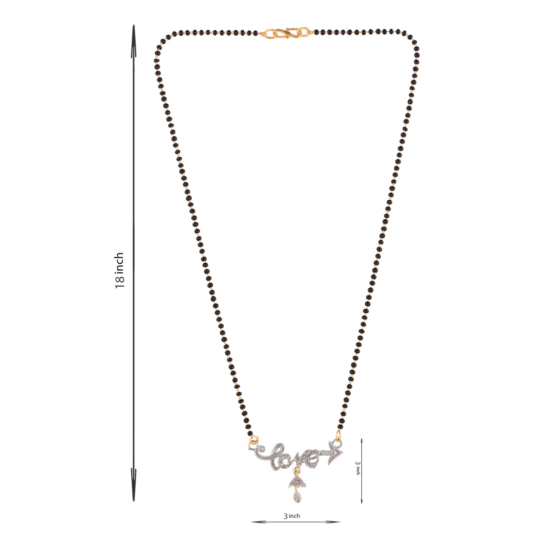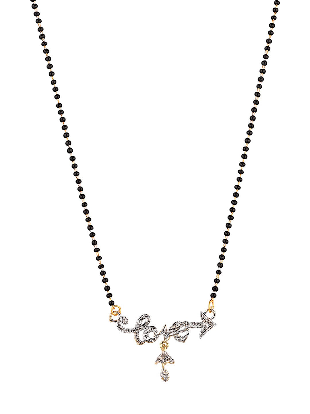 This Stylish Love Design American Diamond Mangalsutra Has Been Exclusively Designed For You By Artisans, This Mangalsutra Is A Perfect Combination Of Contemporary Design. This Handcrafted Studded Ad Stone Gives Trendy And Stylish Look Which Adores Your Look.
