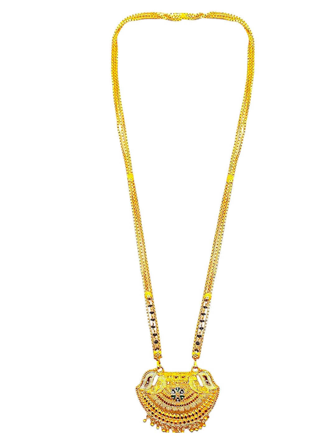 This Classic Mangalsutra Design Makes It More Attractive And Get An Overall Gorgeous Appearance, This Mangalsutra Is A Perfect Combination Of Traditional Design. This Jewellery Adds Mesmerising Looks To Trditional Clothing.