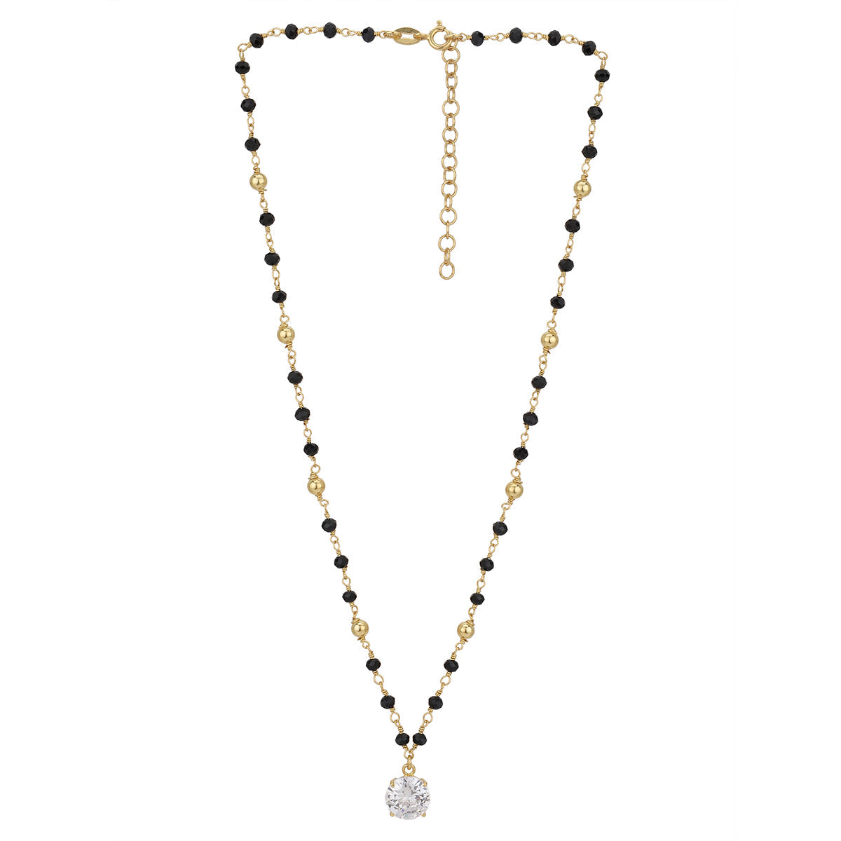 Carlton London Gold-Plated Black Crystal Studded Mangalsuta