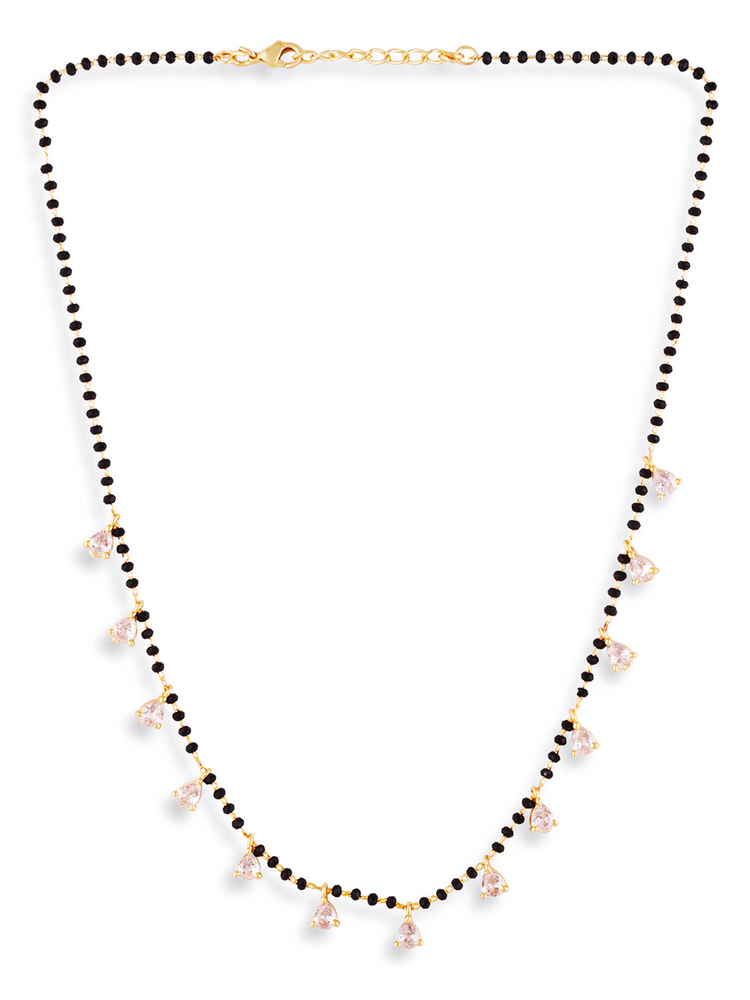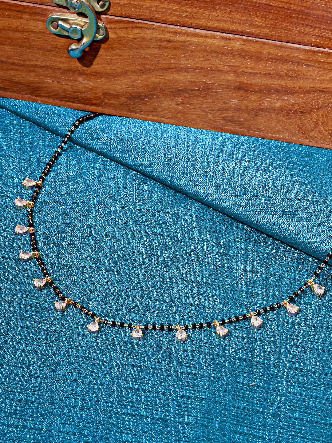 Women's Gold Plated Black Beaded American Diamond Mangalsutra