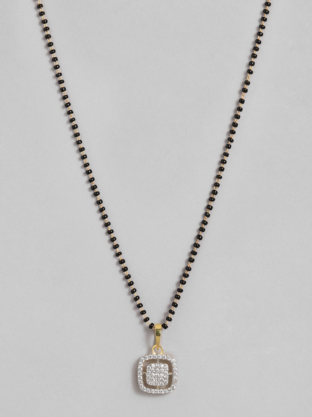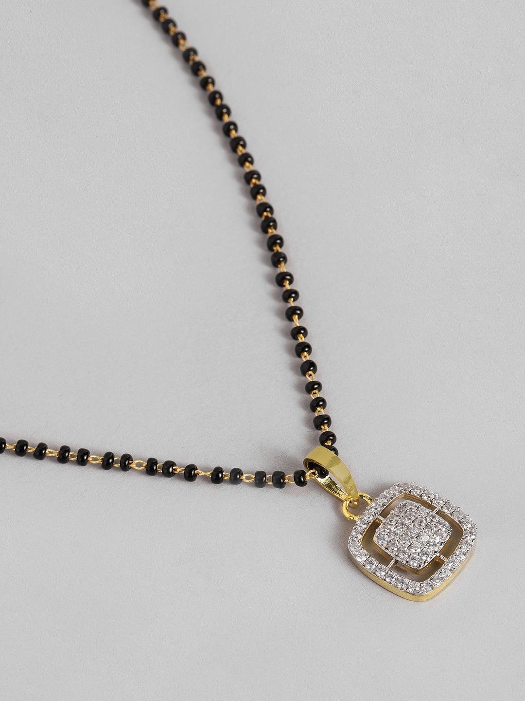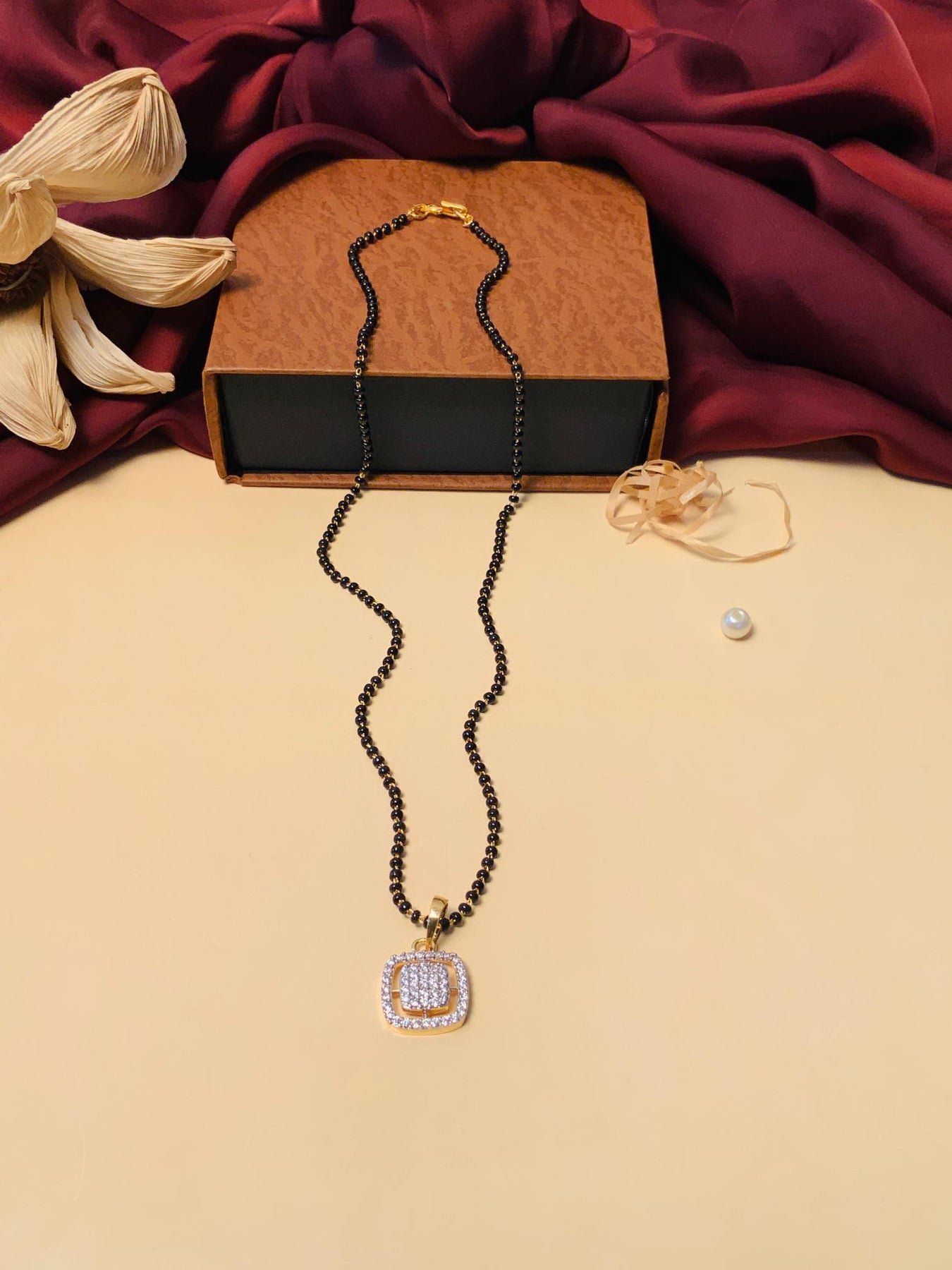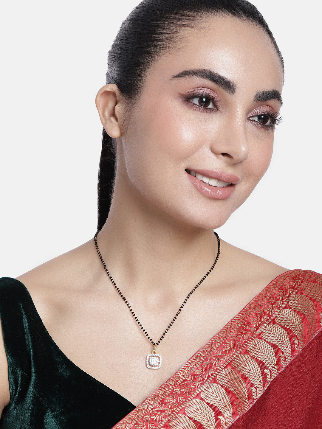 Women's Gold Plated American Diamond & Black Beaded Mangalsutra