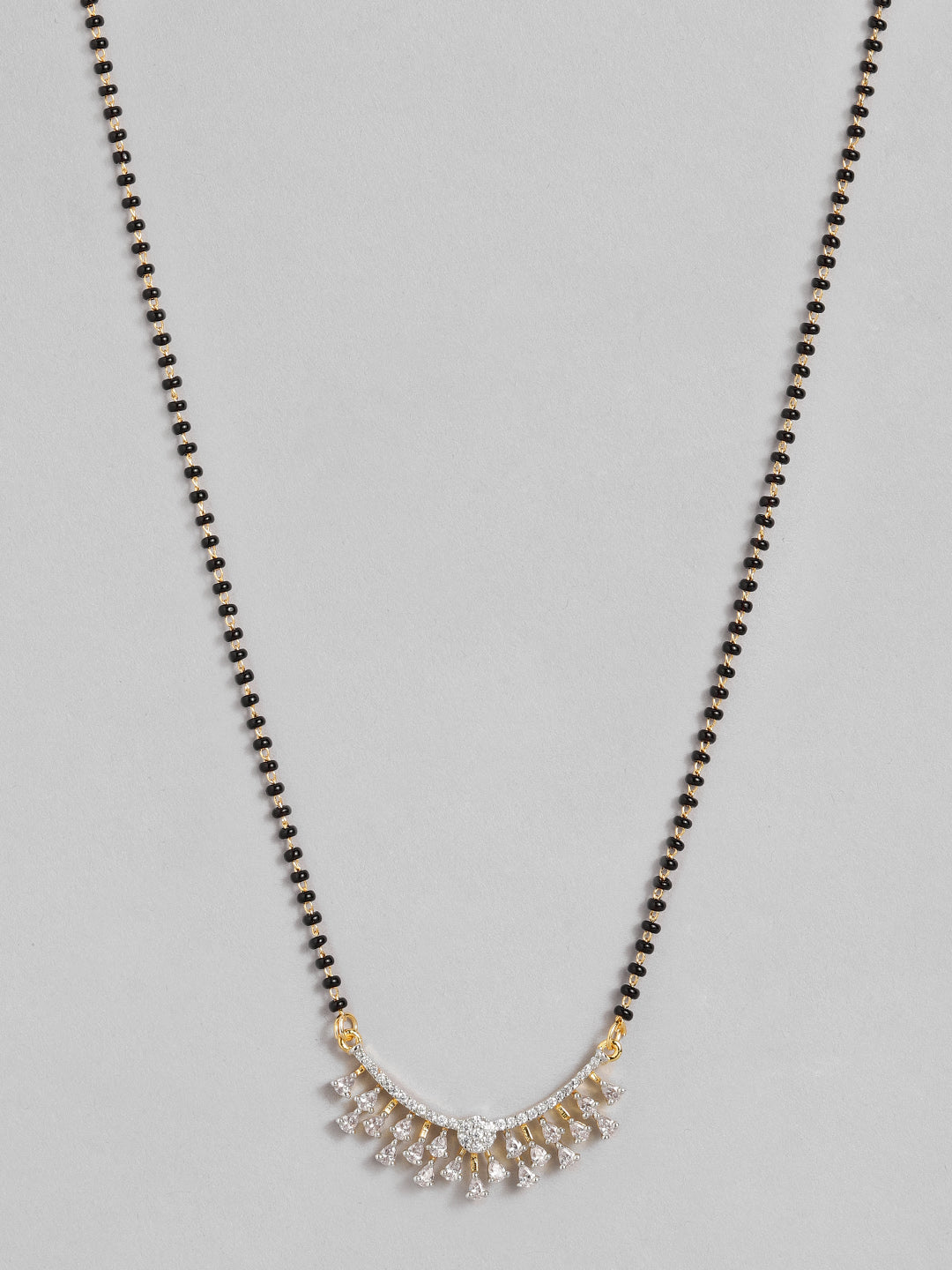 Women's Gold Plated American Diamond & Black Beaded Mangalsutra