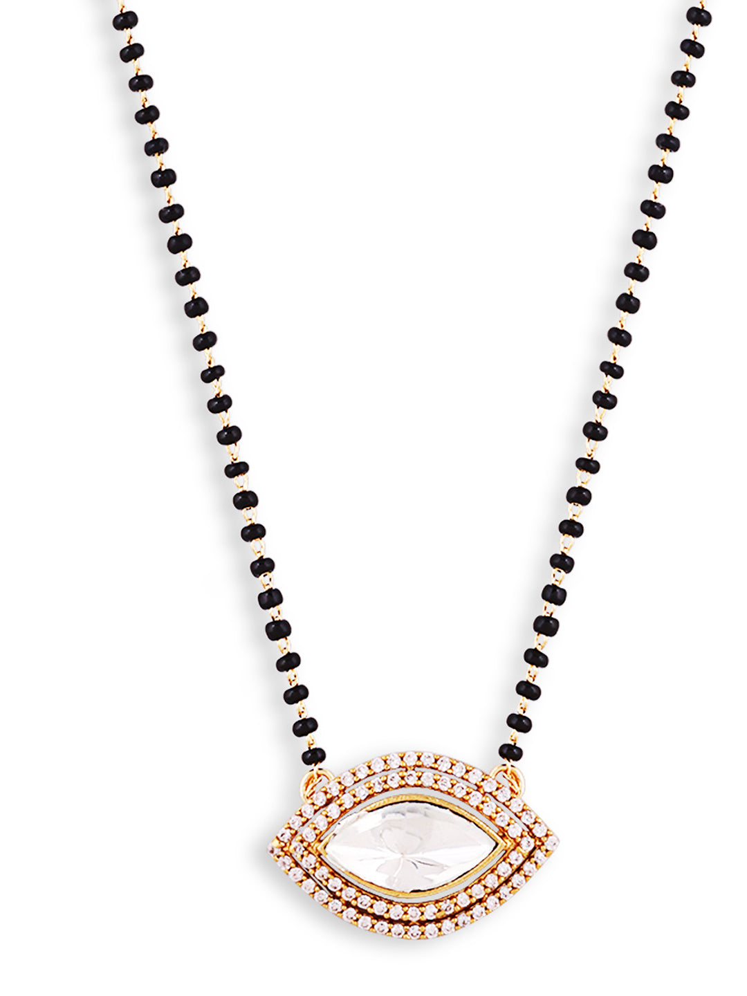 Women's Gold Plated Black Beaded Polki & Diamond Mangalsutra & Earrings Set