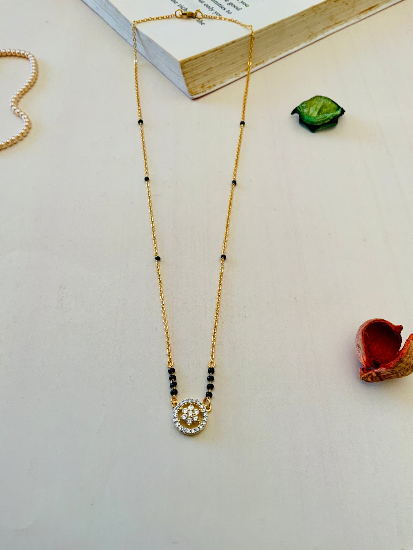 Women's Gold Plated American Diamond & Black Beaded Mangalsutra