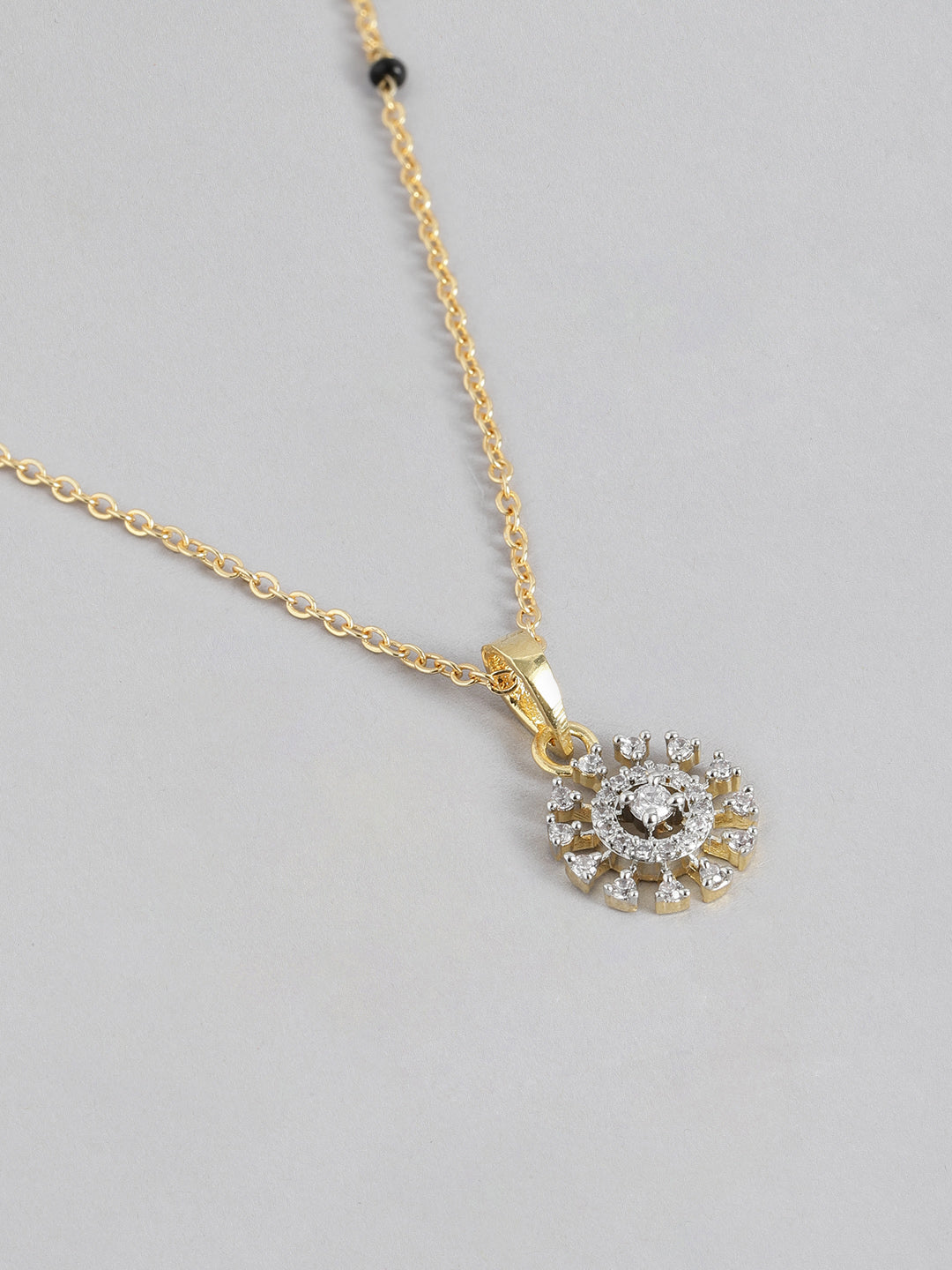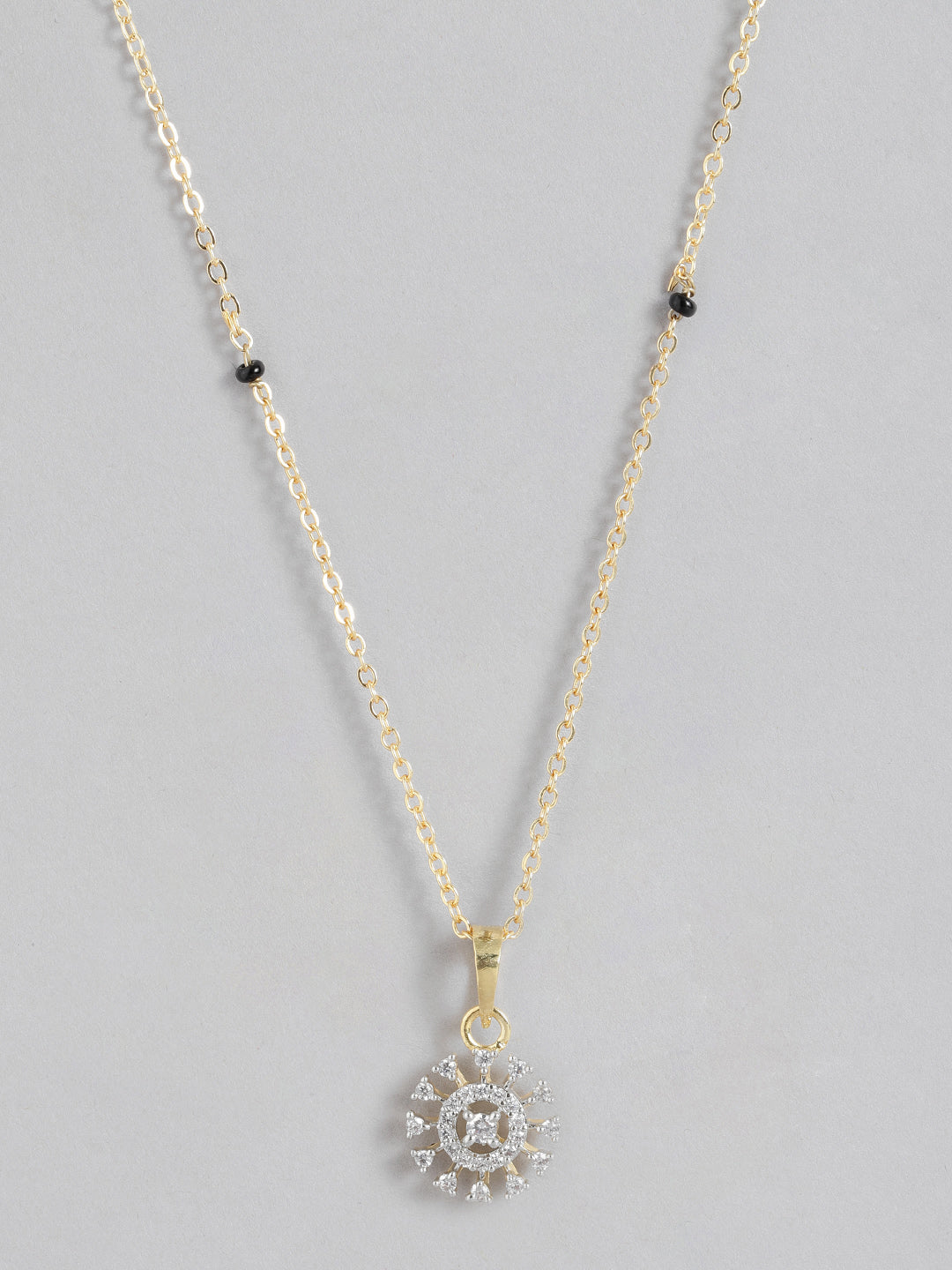 Women's Gold Plated American Diamond & Black Beaded Mangalsutra