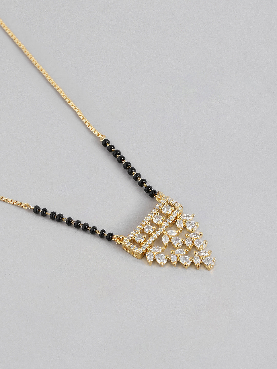 Women's Gold Plated Black Beaded American Diamond Mangalsutra
